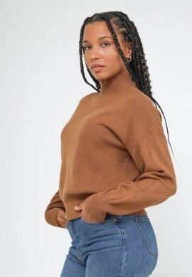 Jersey liso cuello cisne - Marrón