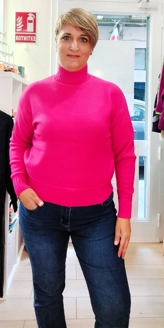 Jersey liso cuello semicisne - fucsia