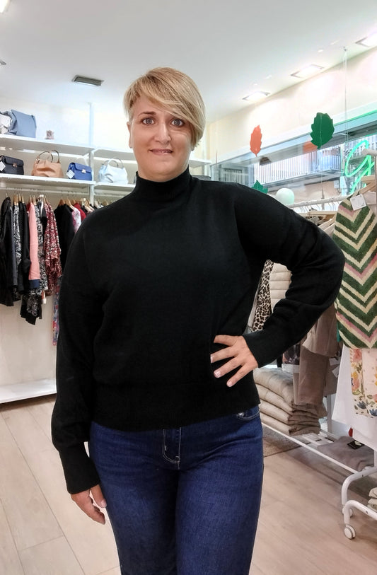 Jersey liso cuello cisne - negro