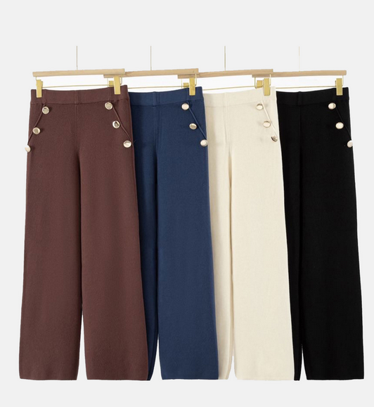 Pantalón recto punto botones dorados