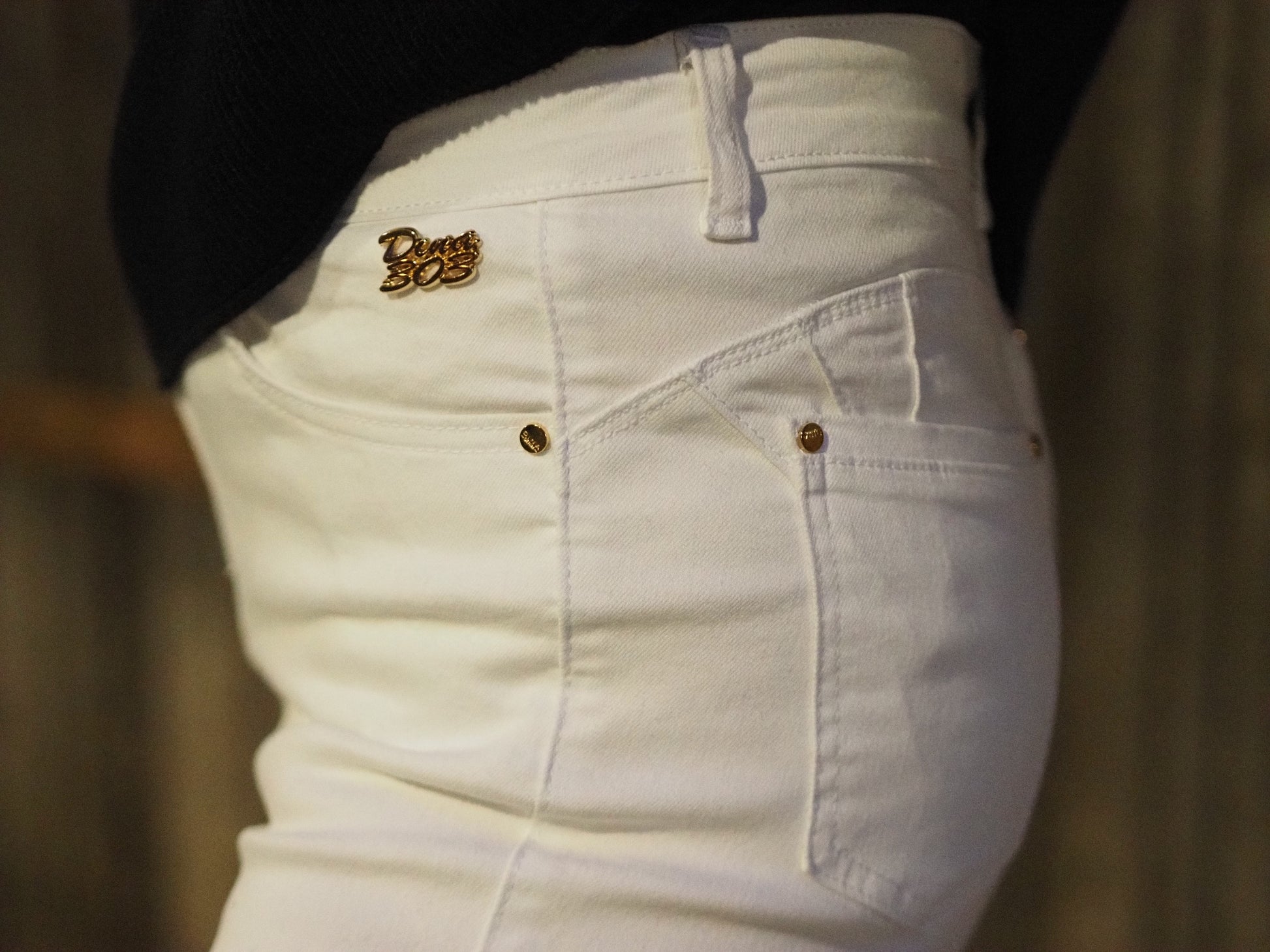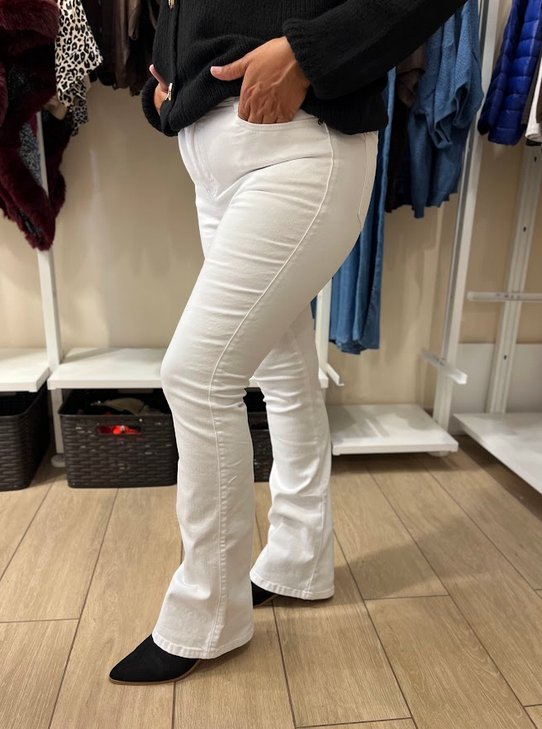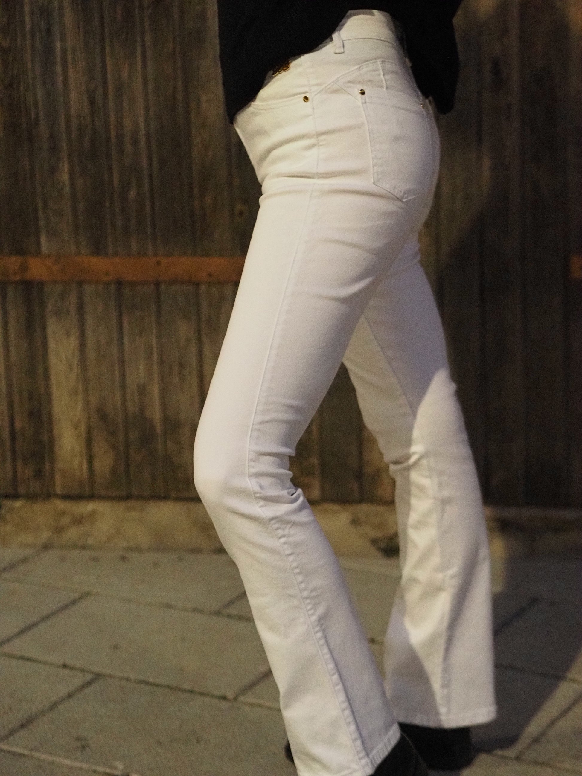 Ref. 36303 Pantalón vaquero campana, elástico, 2 bolsillos delanteros y 2 traseros, cierre con botón y cremallera