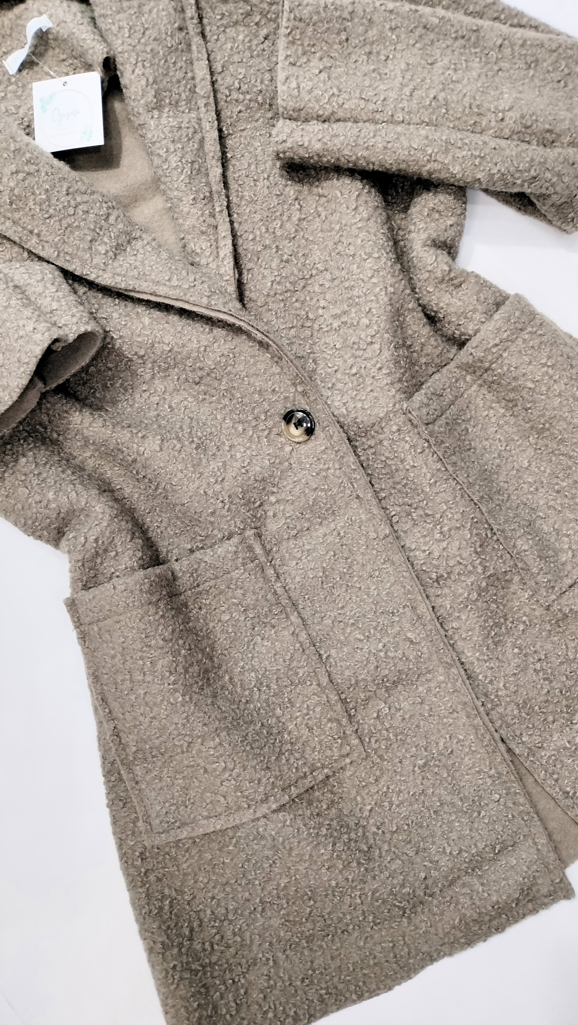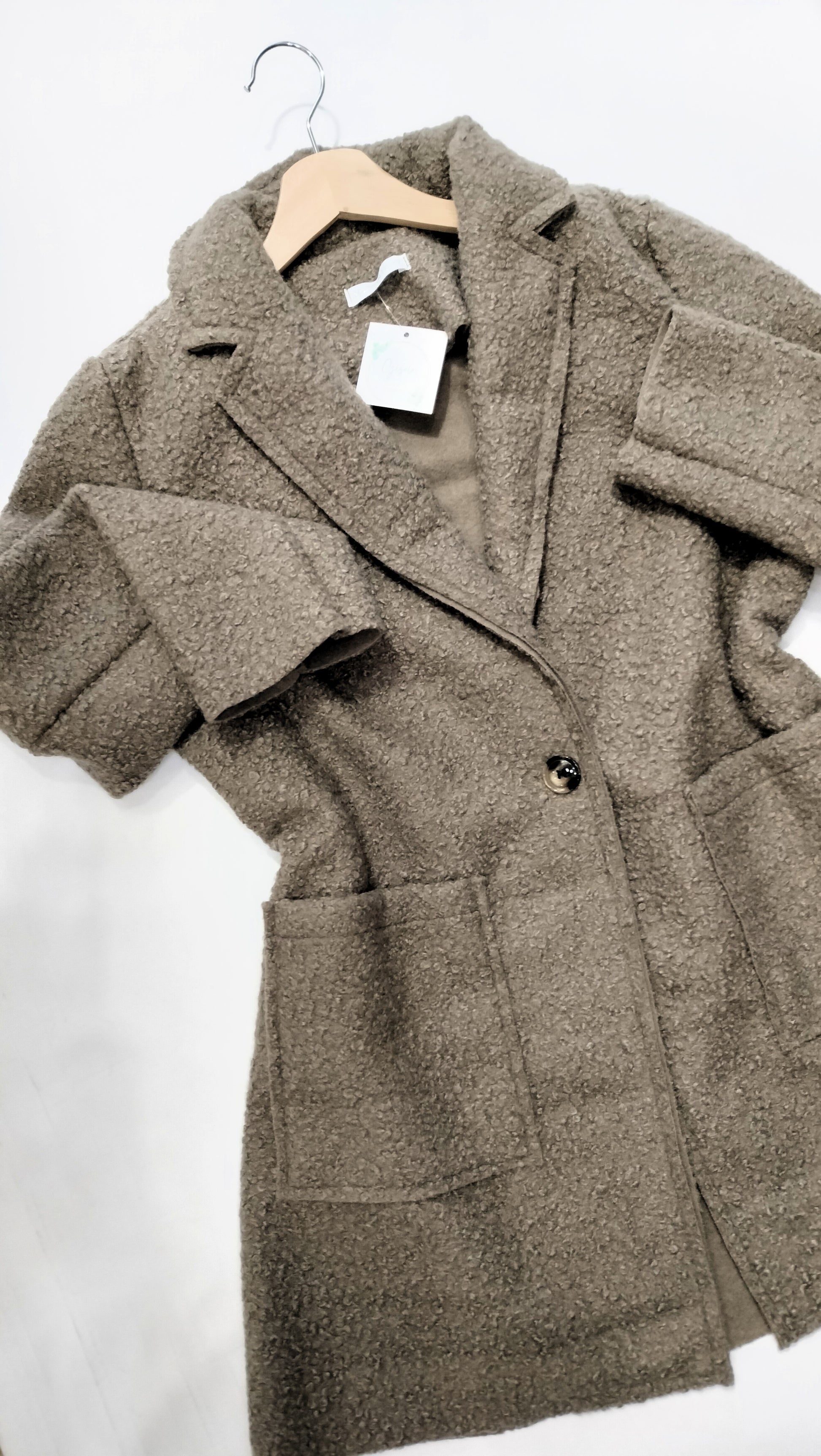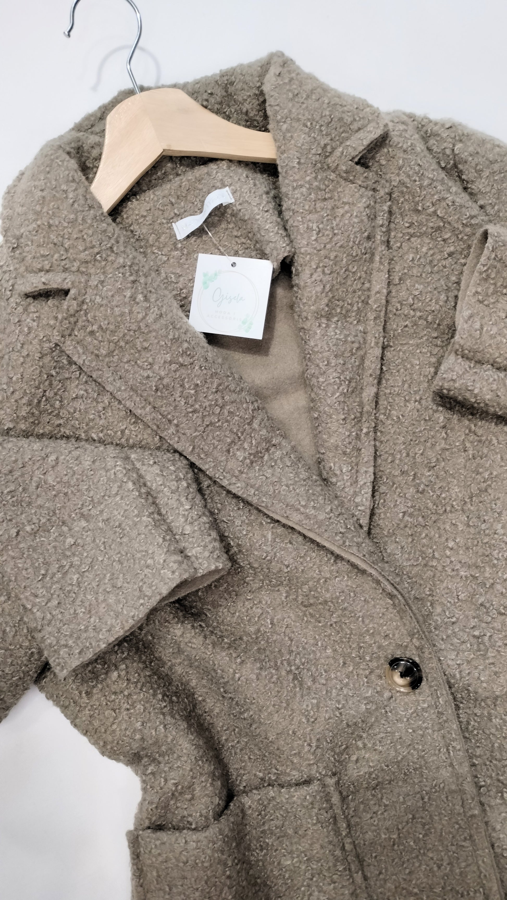 Ref. 3213 Abrigo largo por debajo de la cadera, manga larga, sin acolchado ni forro, corte entallado, 2 bolsillos grandes frontales, cierre con botón, escote tipo solapa. Talla única pecho 54 cms. 100% poliéster
