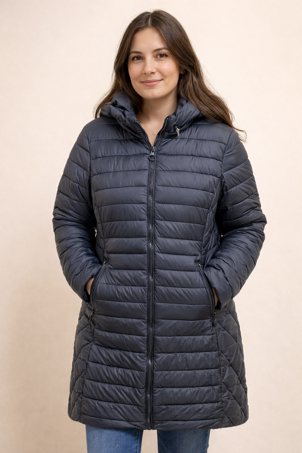 Ref. 7570 Abrigo guateado juvenil con capucha desmontable. Color azul marino. Tallas: M (44/46), L (46/48), XL (48/50), XXL (52/54), 3XL (54/56)