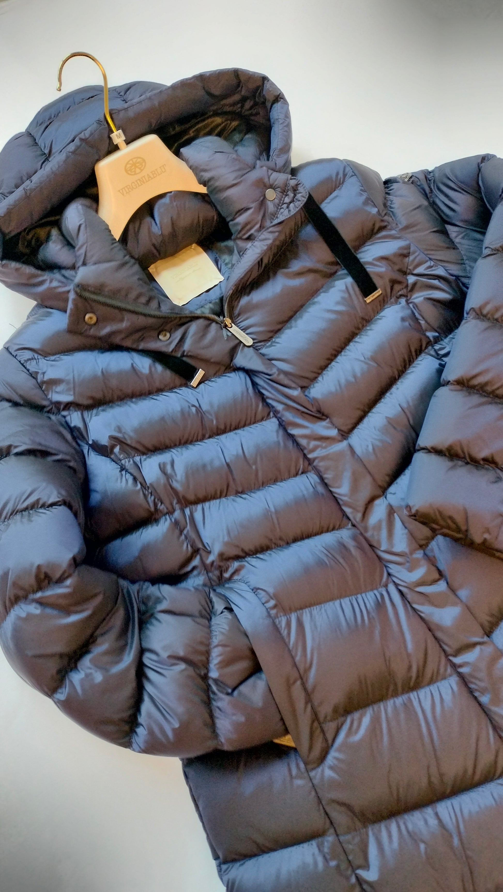 Ref. JR Clodia Anorac para invierno, corte entallado, largo por encima de la rodilla, cierre con cremallera y botones a presión, 2 bolsillos con cremallera, capucha extraible y ajustable con cordón.