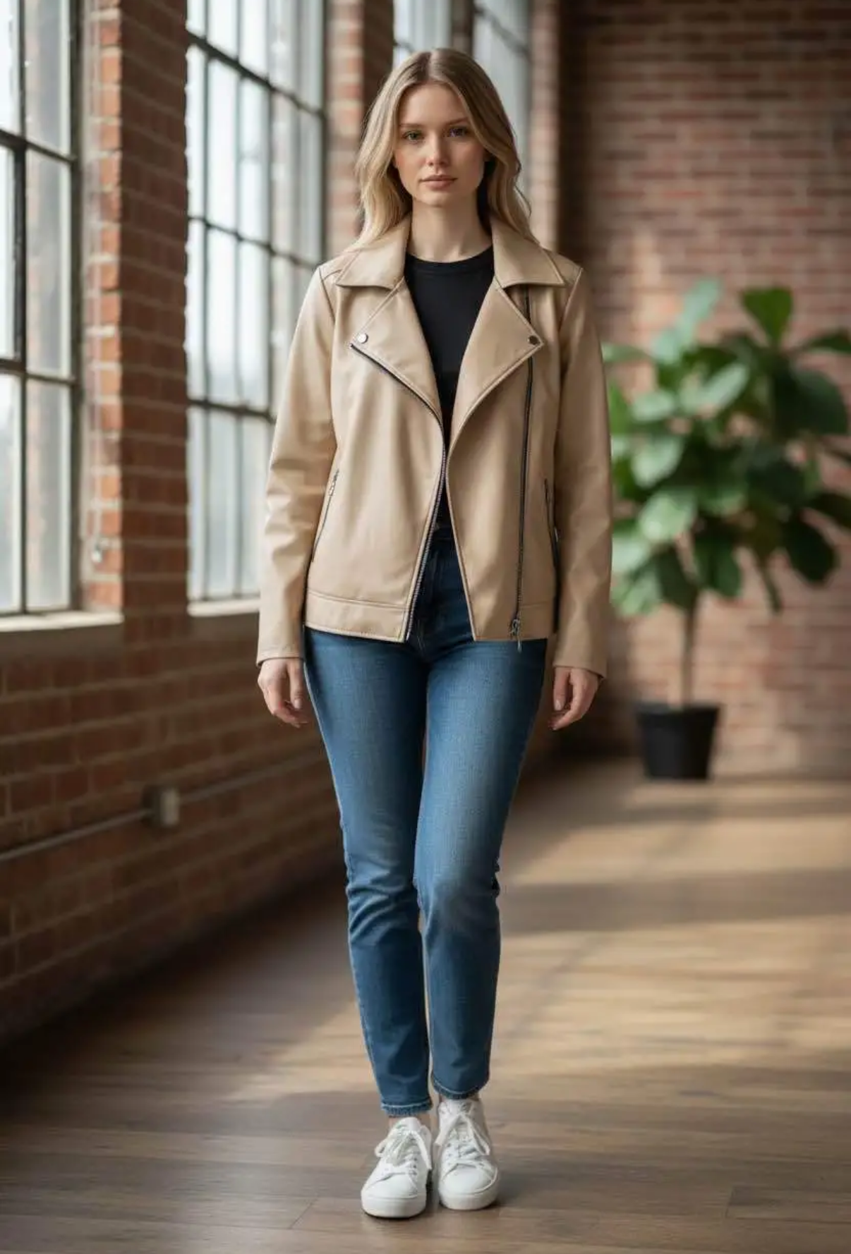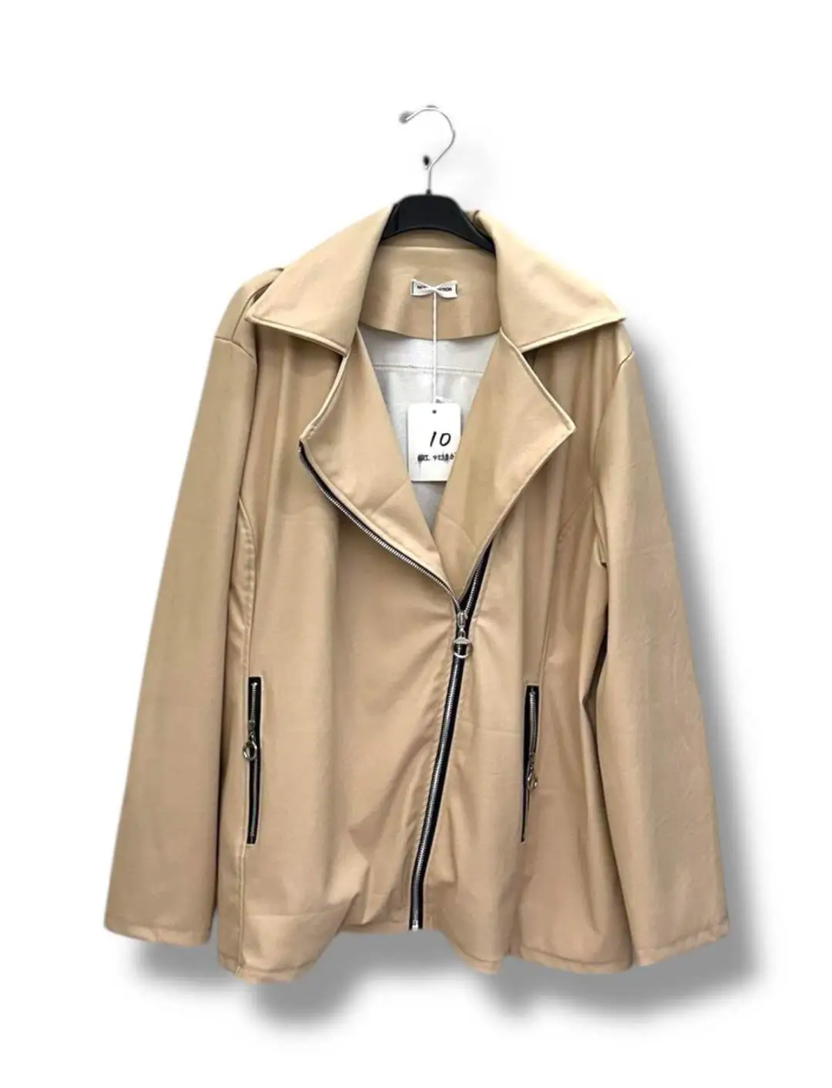 Ref. 91350 Chaqueta tipo biker de polipiel en color beige, talla única curvy, 100% poliester
