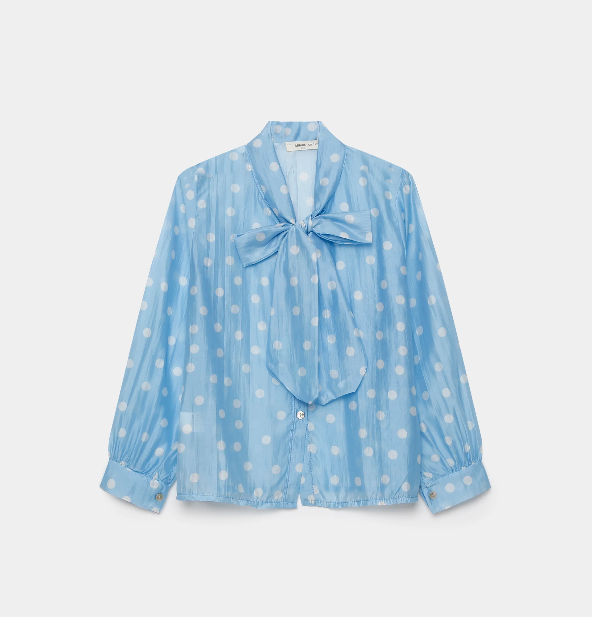 Ref: 103563756 Tejido tencel. Estampado lunares. Cuello redondo con lazada. Manga 3/4. Cierre frontal con botones. Composición: 85% Tencel, 25% Poliester. Hecho en Italia