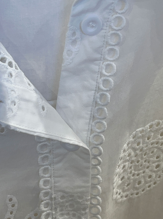 Ref. 5549 Camisa bordada con detalle calado y cierre de botones. Tallas: M-L-XL. Composición: 100% algodón. Color blanco