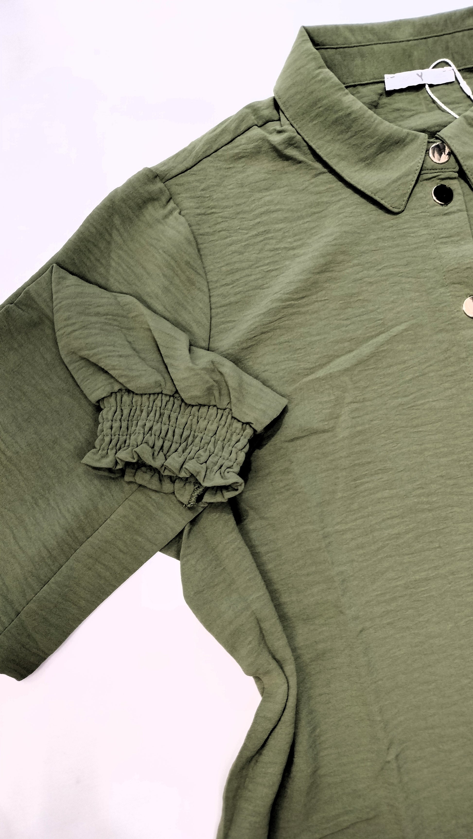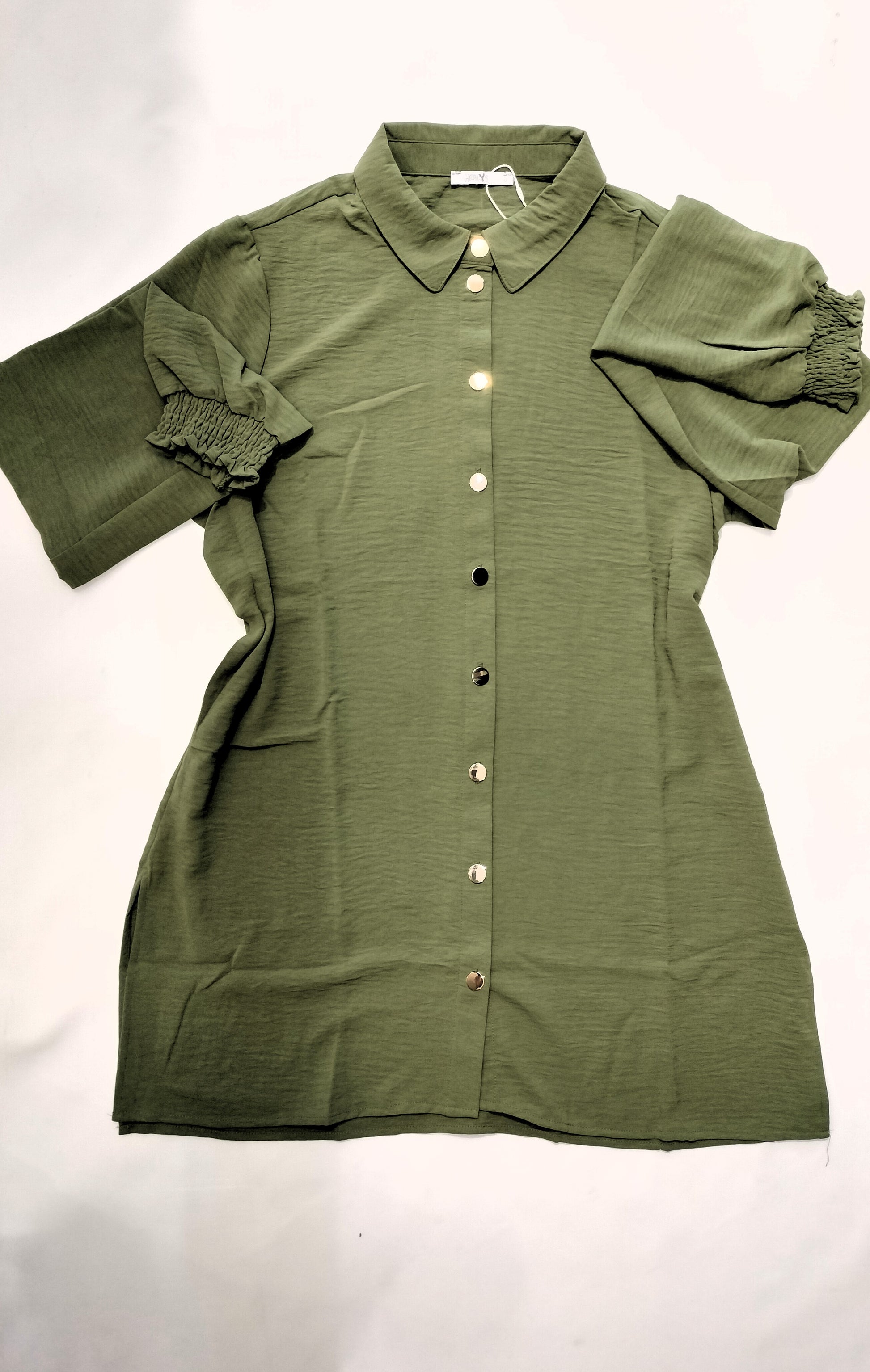 REf. JR BOX-2302027 Blusa camisera larga, manga larga con puño elástico, cierre con botones dorados, corte entallado, tejido muy ligero y fluido, cuello de camisa