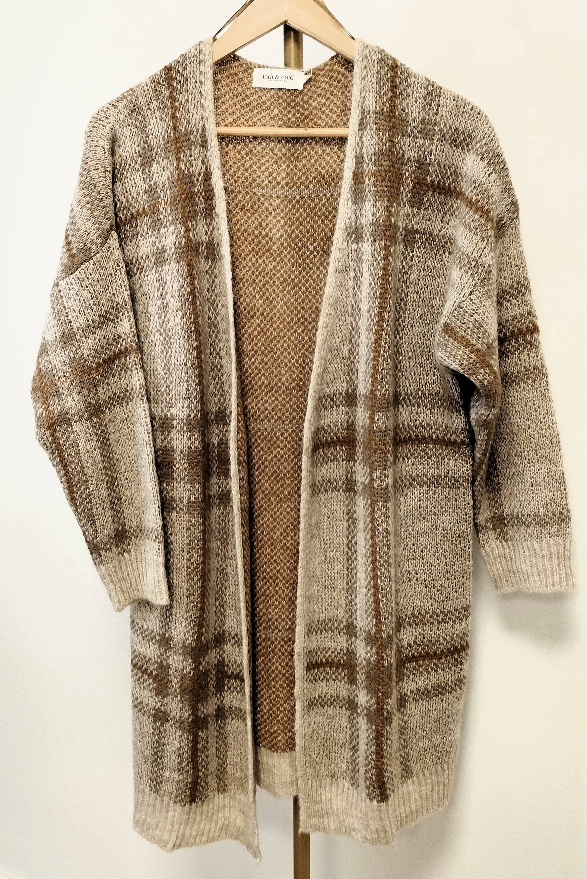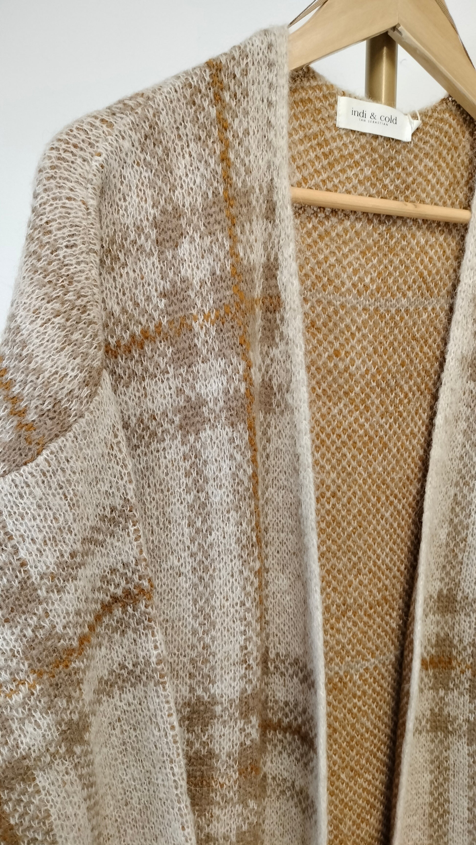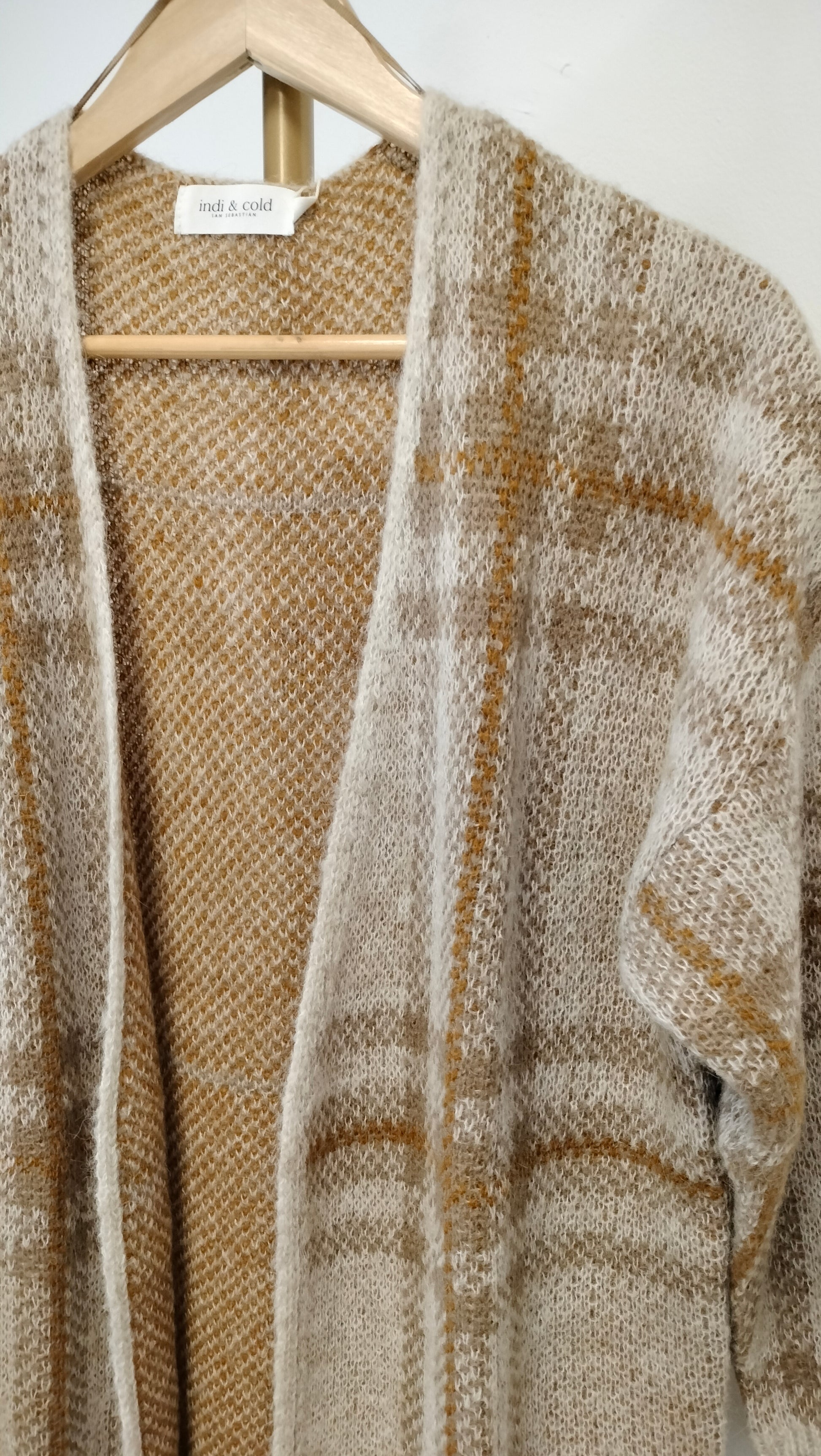 Ref. JR VI23EA640 Cardigan largo midi de lana, abierto, manga larga, corte recto. Color marrón