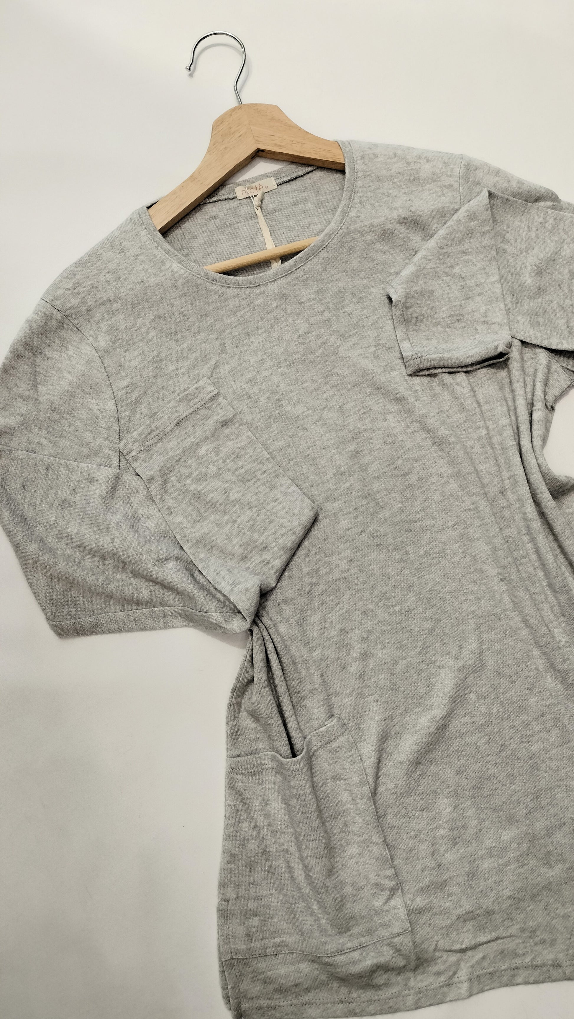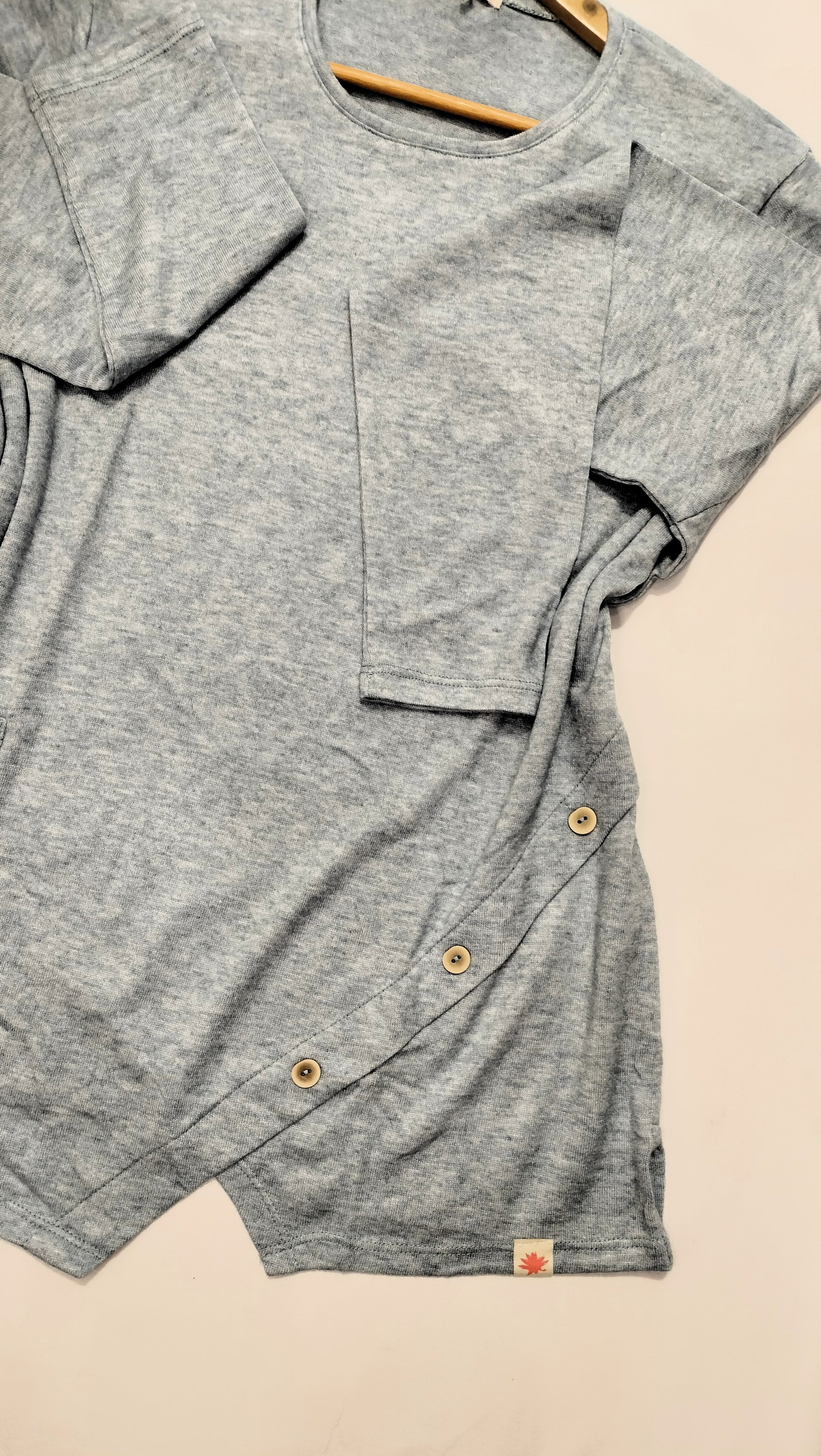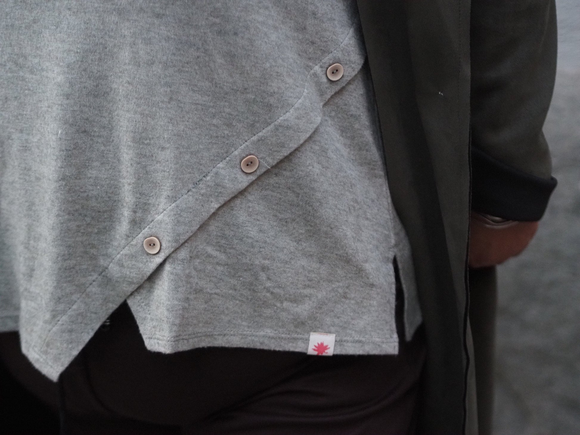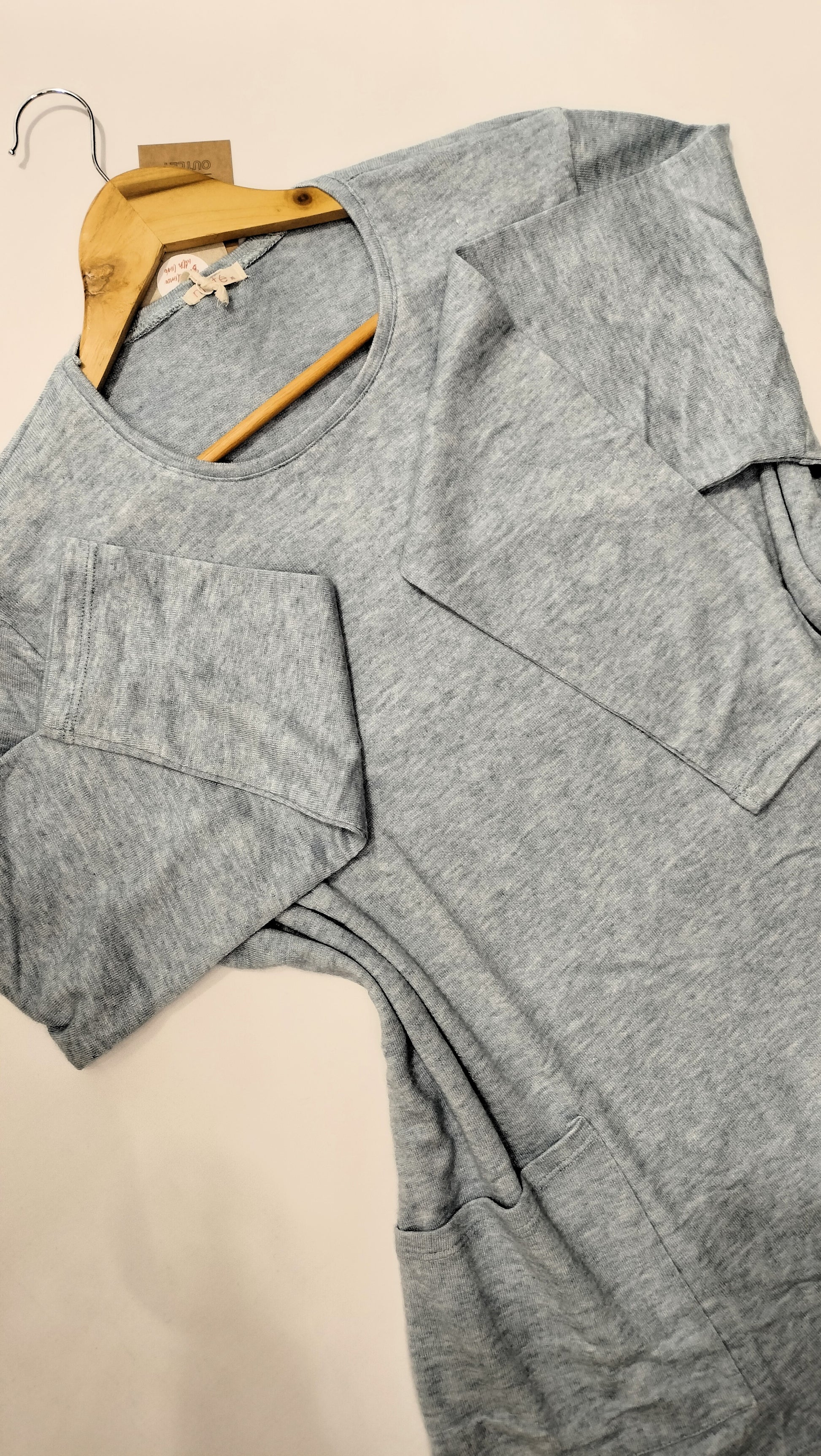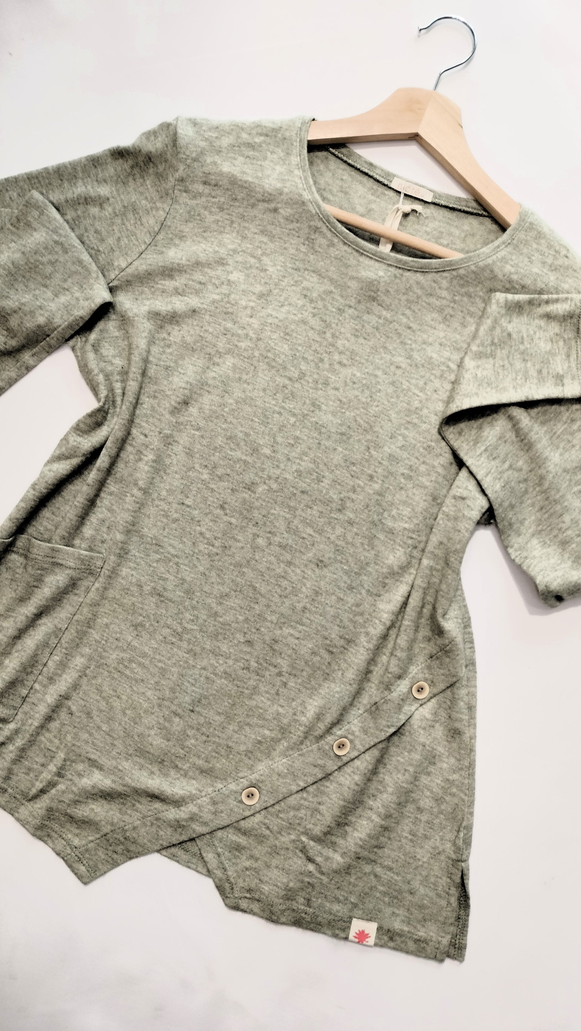 Ref. JR 6280 Jersey fino de manga larga, cuello redondo, bajo delantero asimétrico, 1 bolsillo, detalle botones decorativos