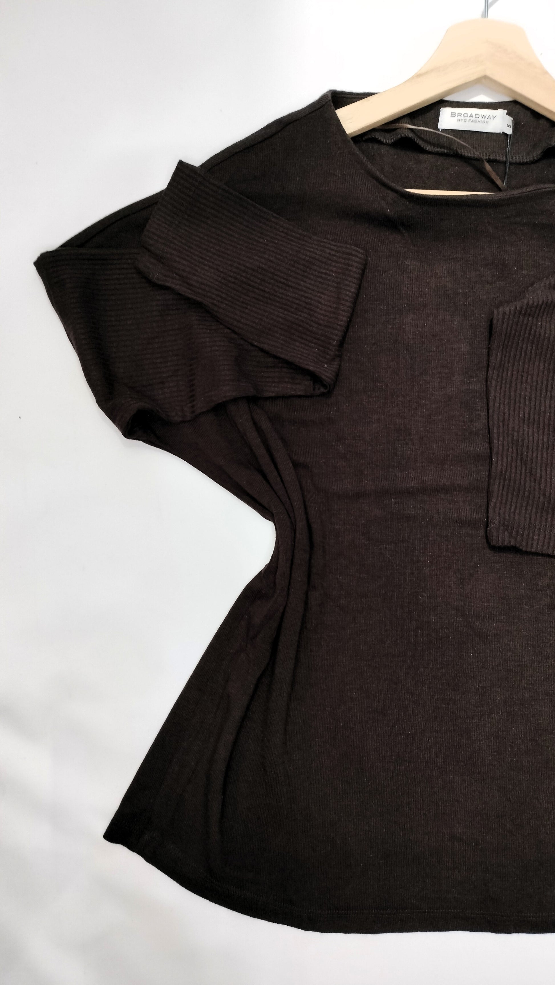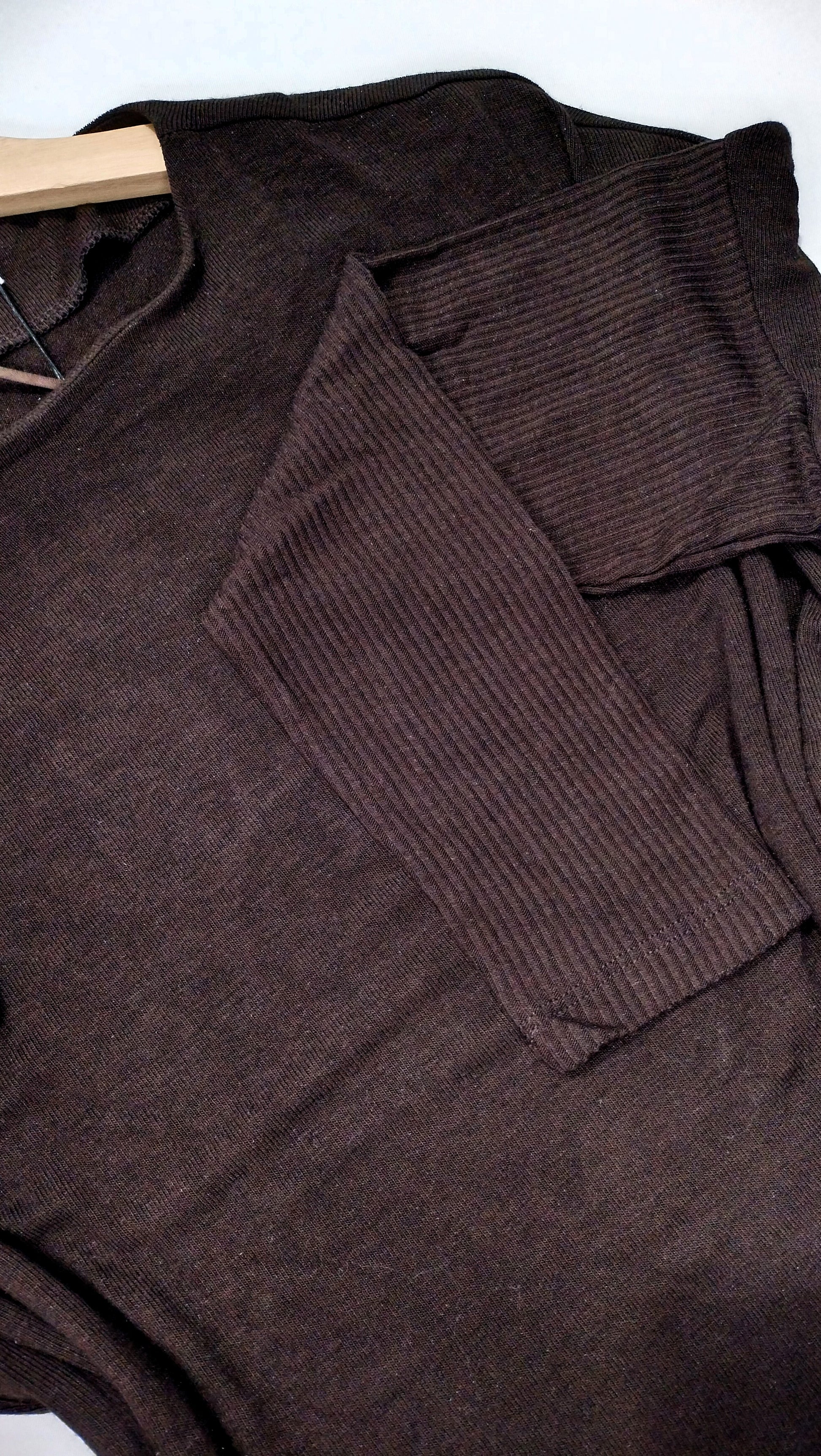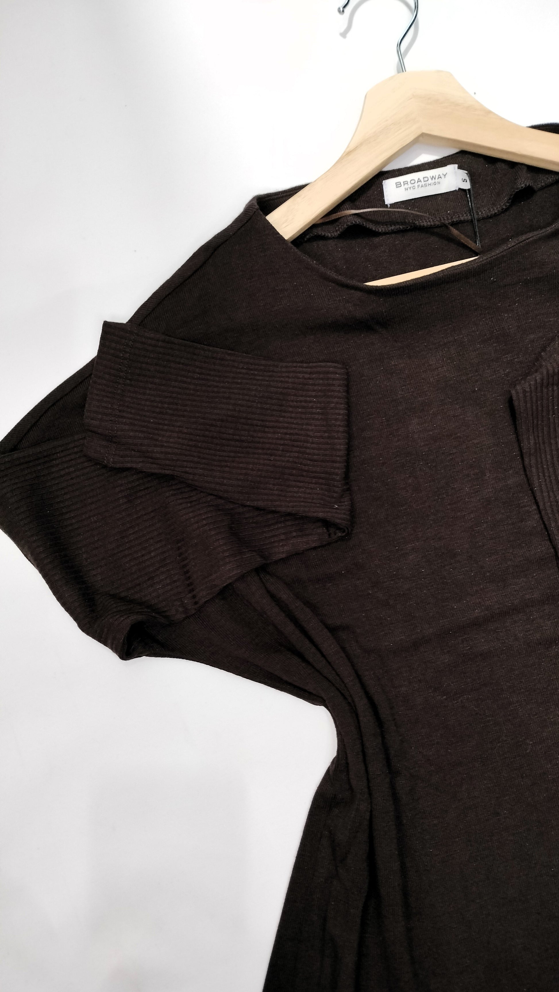 REf. JR 550002700 Jersey fino en color marrón oscuro, cuello redondo, mangas largas en punto de canalé, corte recto