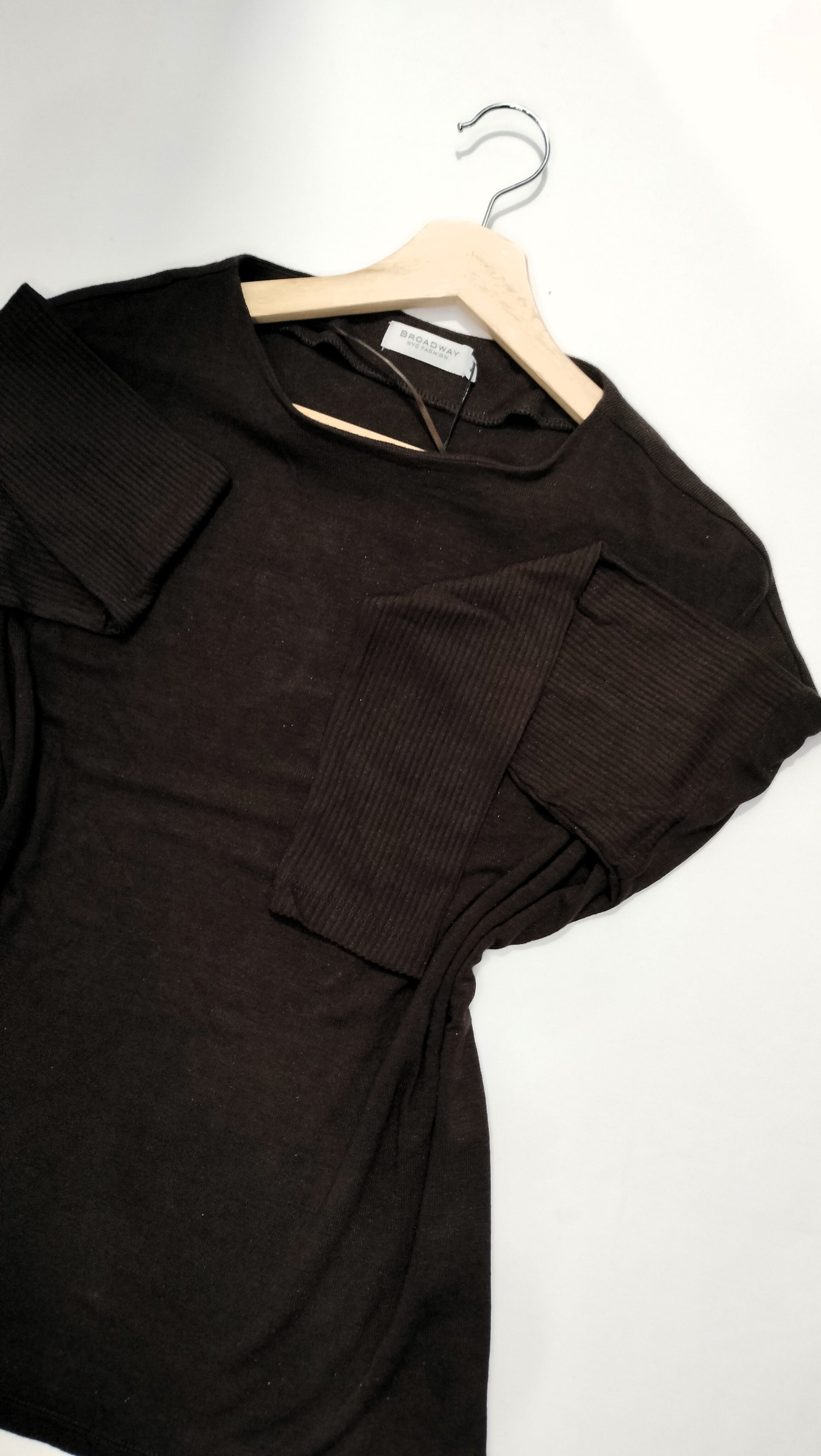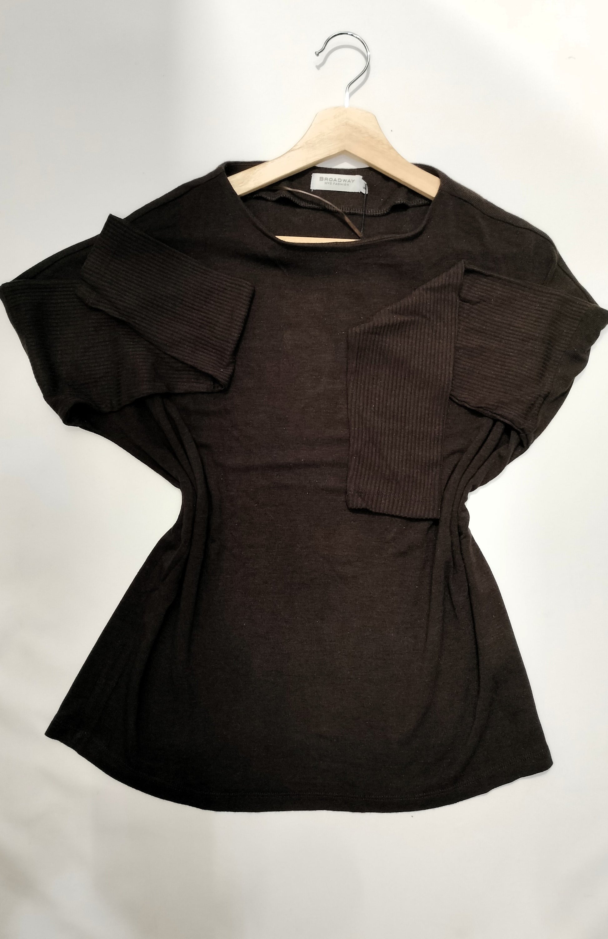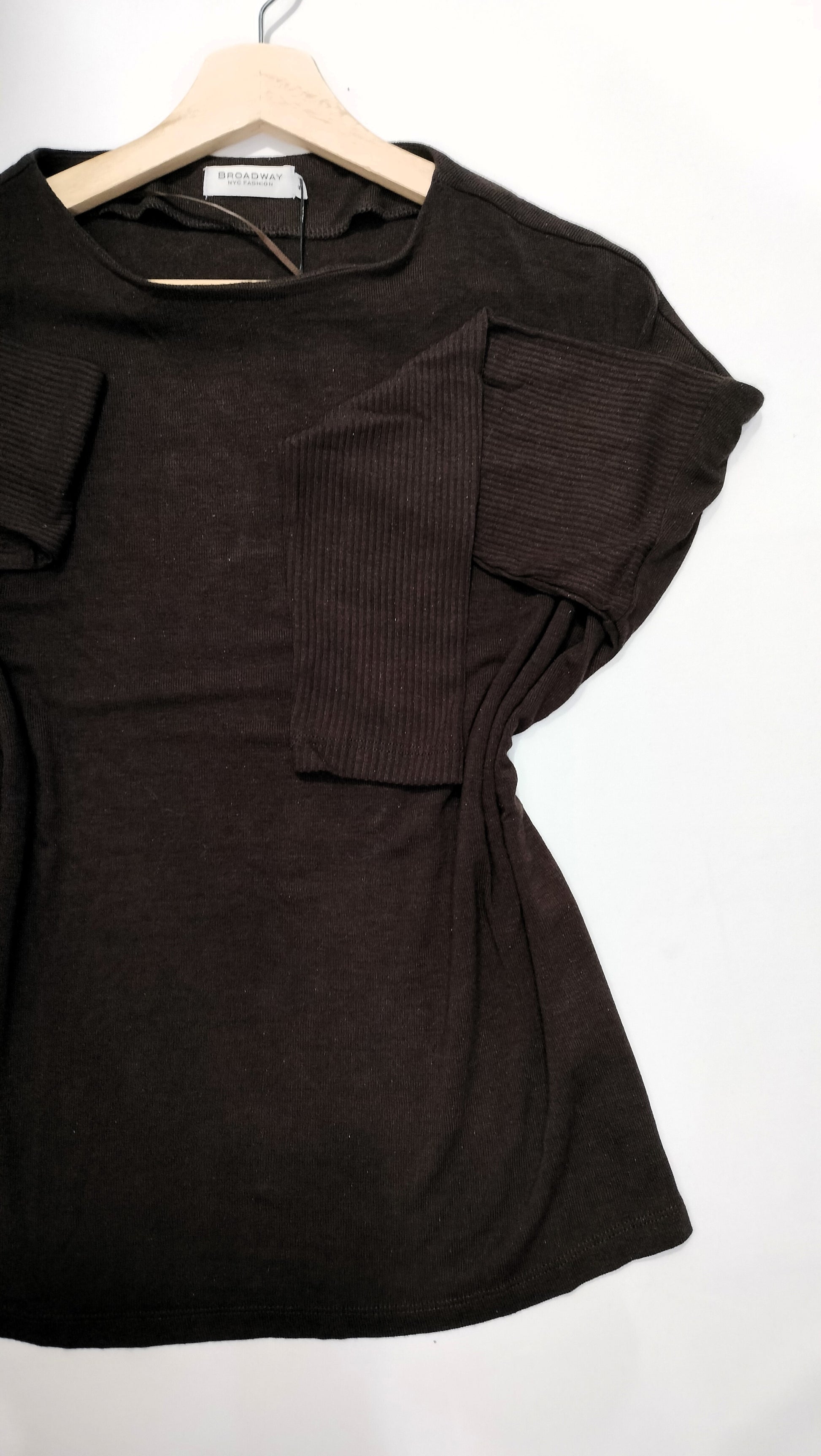 REf. JR 550002700 Jersey fino en color marrón oscuro, cuello redondo, mangas largas en punto de canalé, corte recto