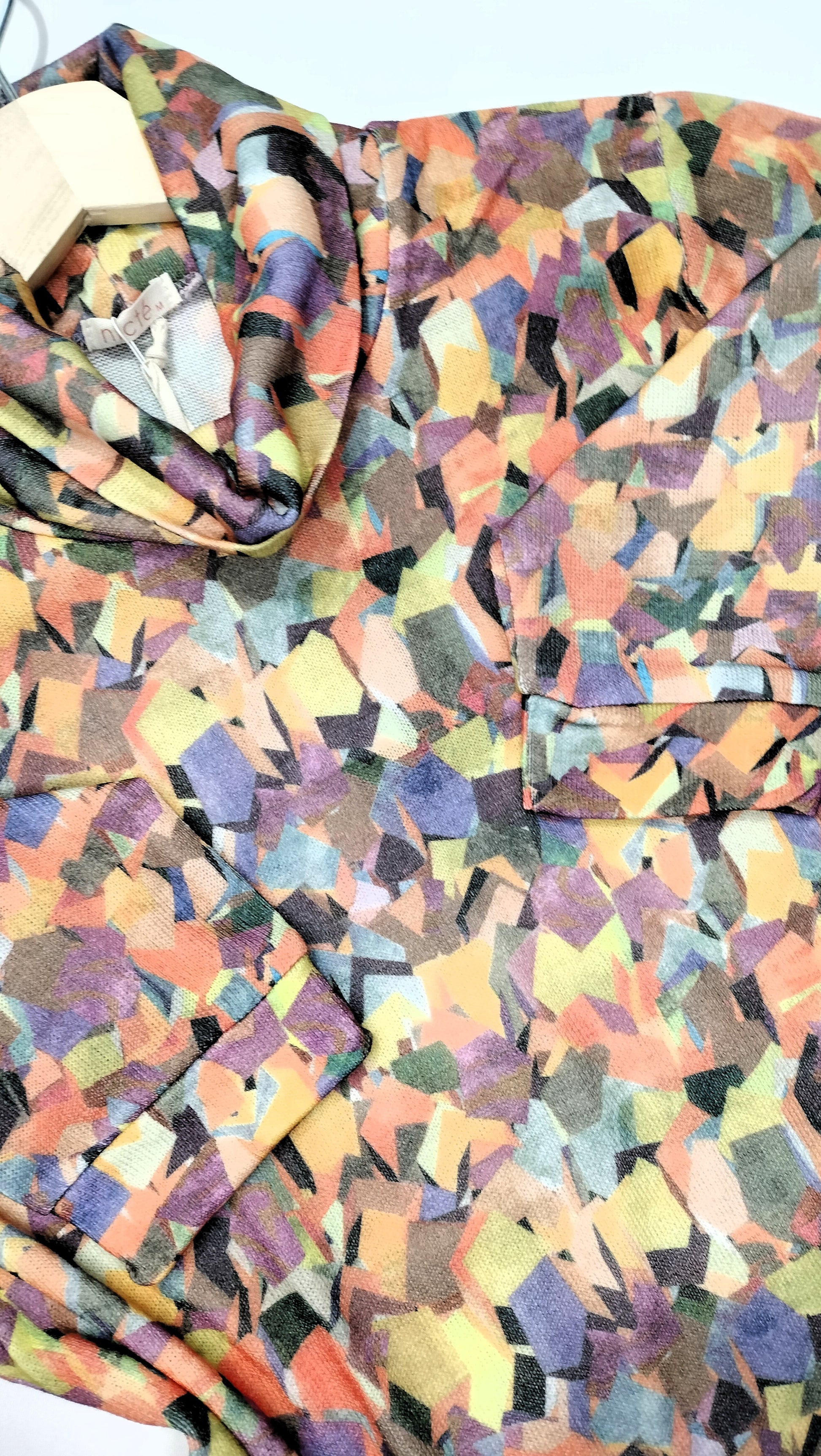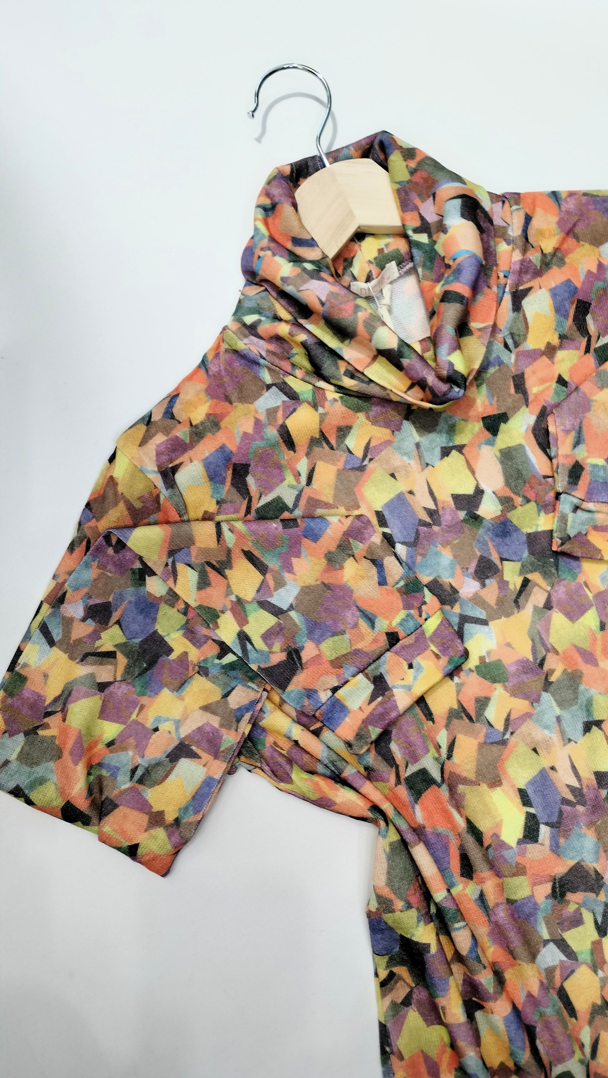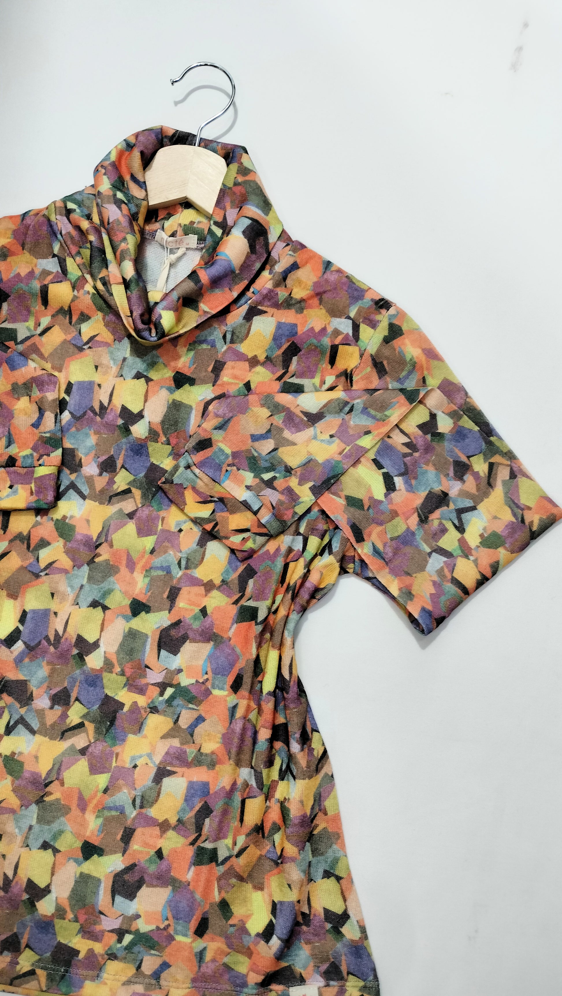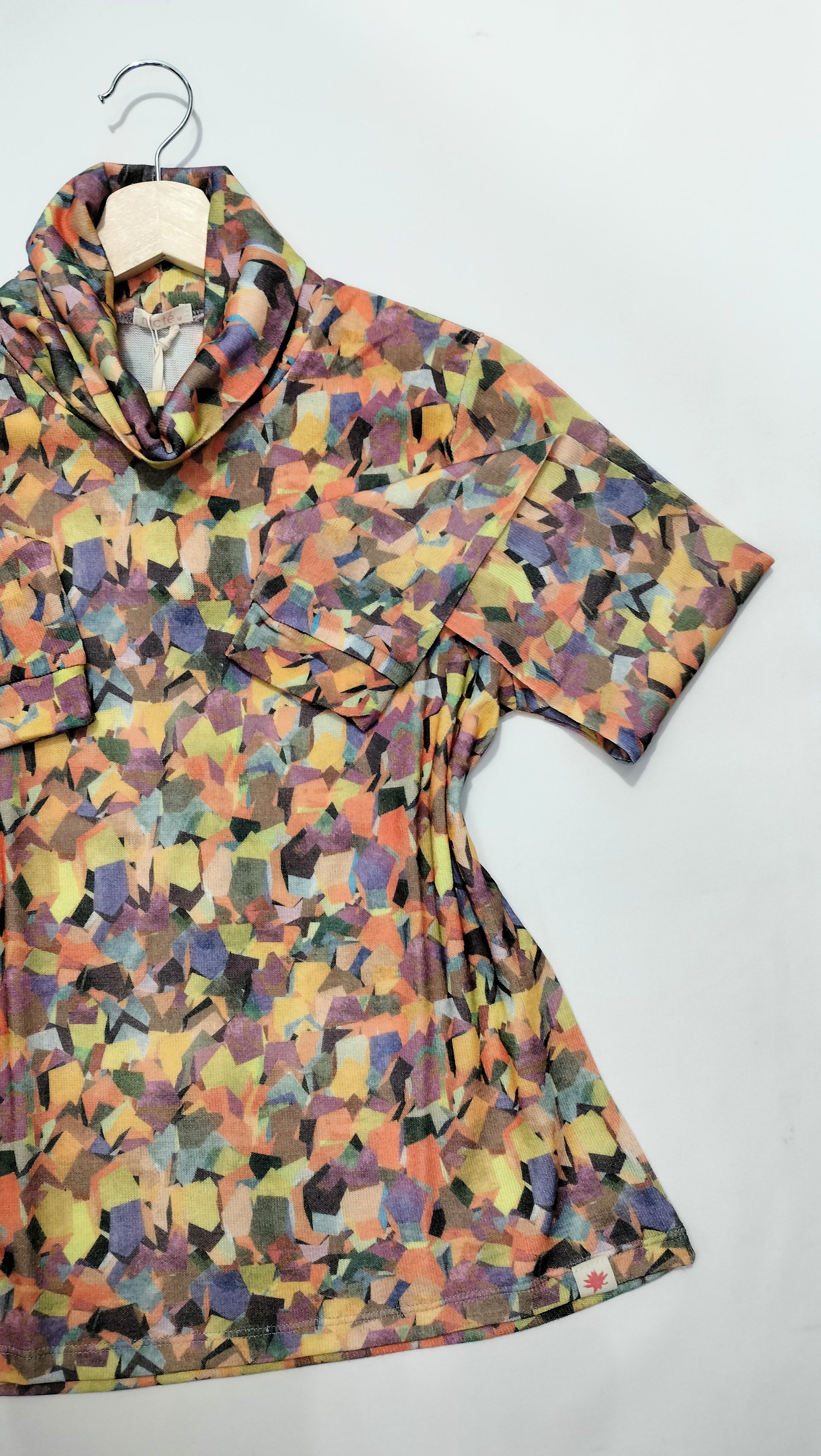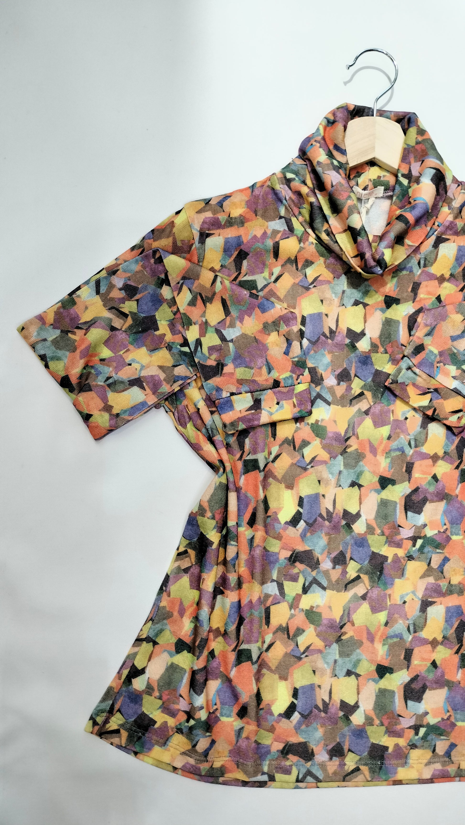 Ref. JR 6340.columbia Jersey fino estampado, manga larga, cuello vuelto, corte recto.