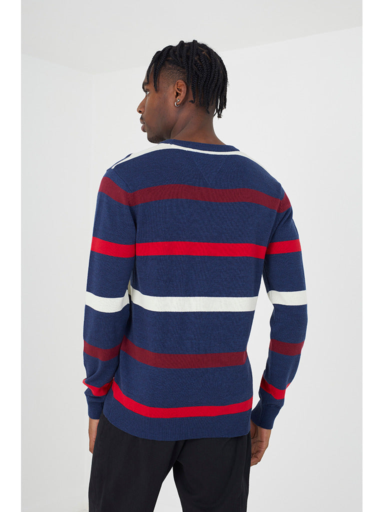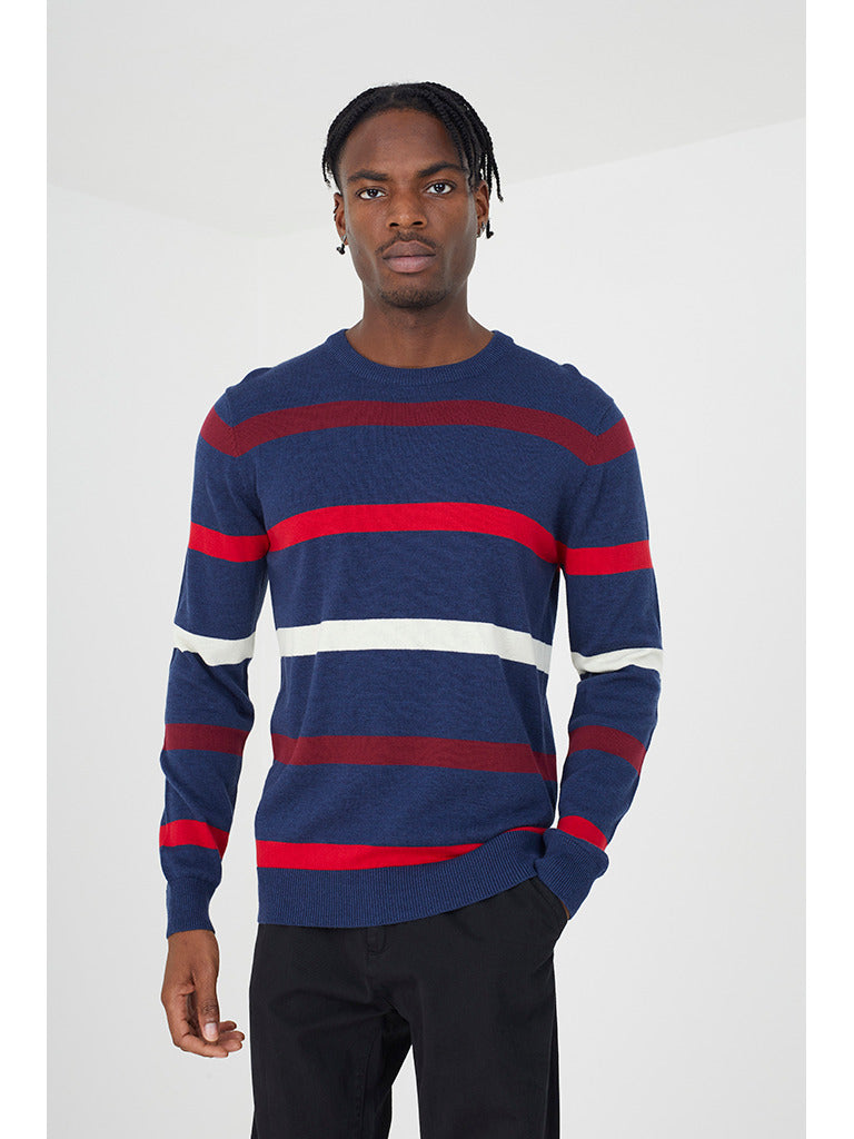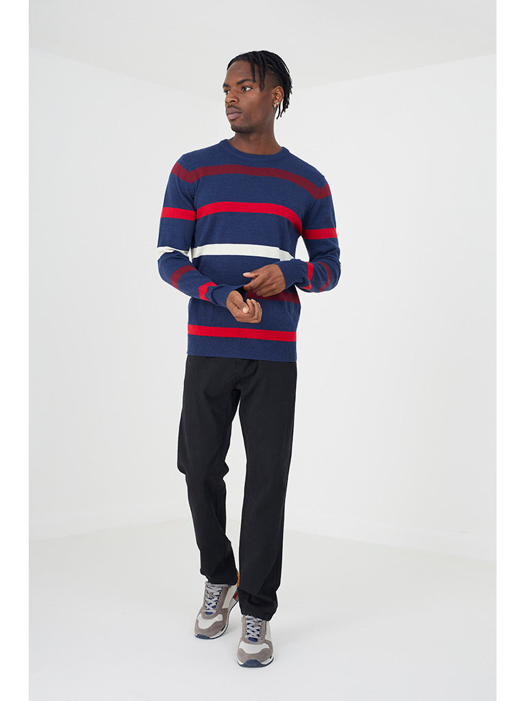Ref. Jordi Jersey de hombre de punto a rayas cuello caja. 100% Algodón