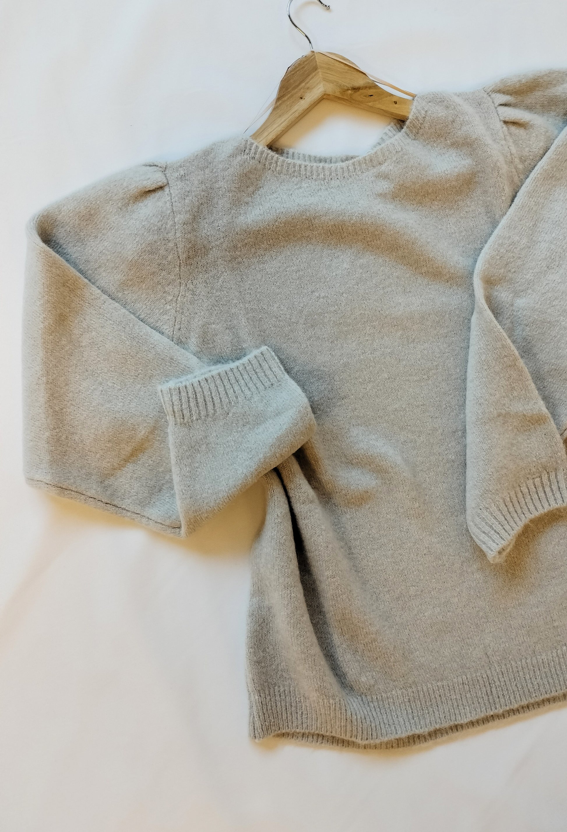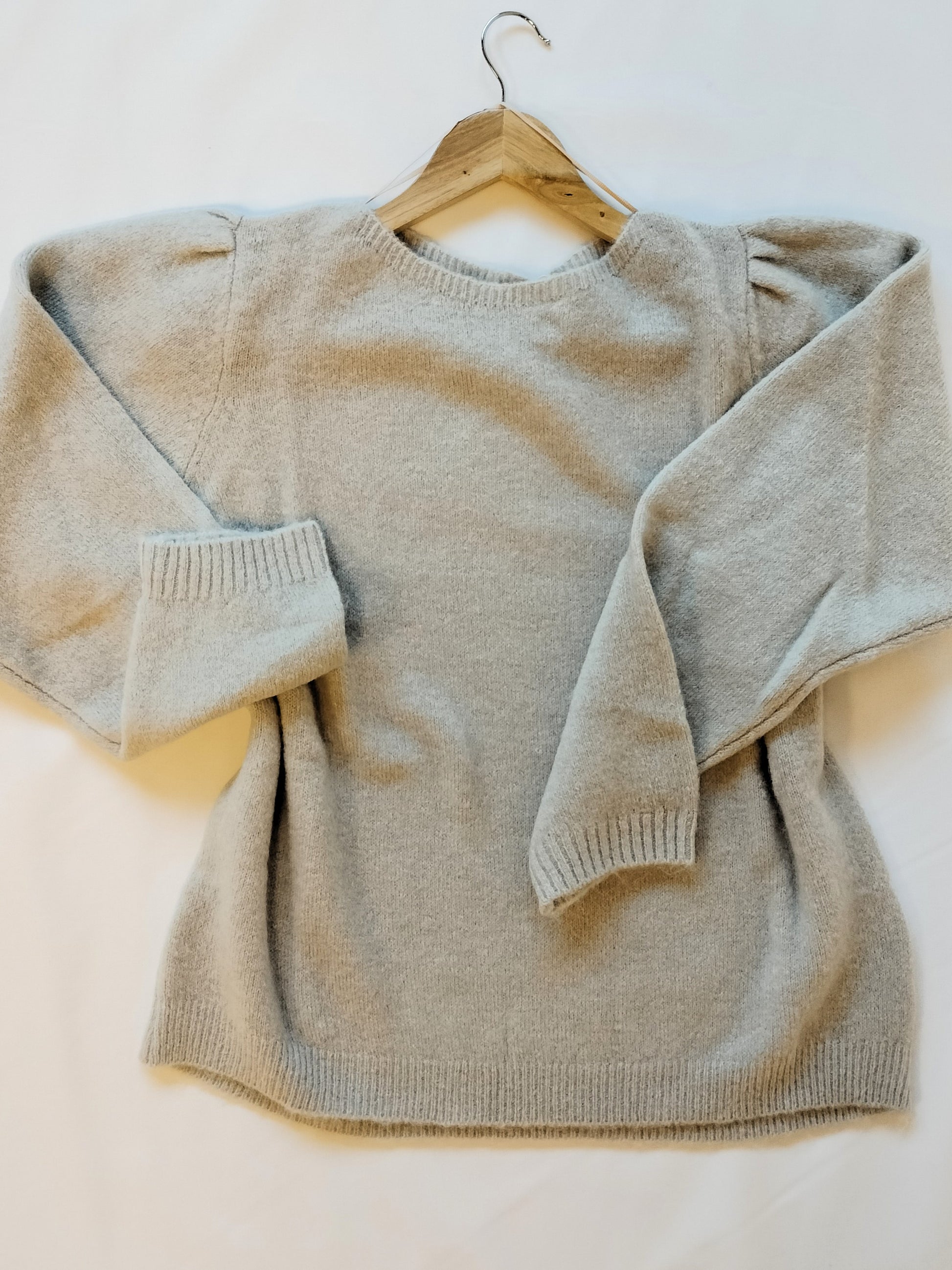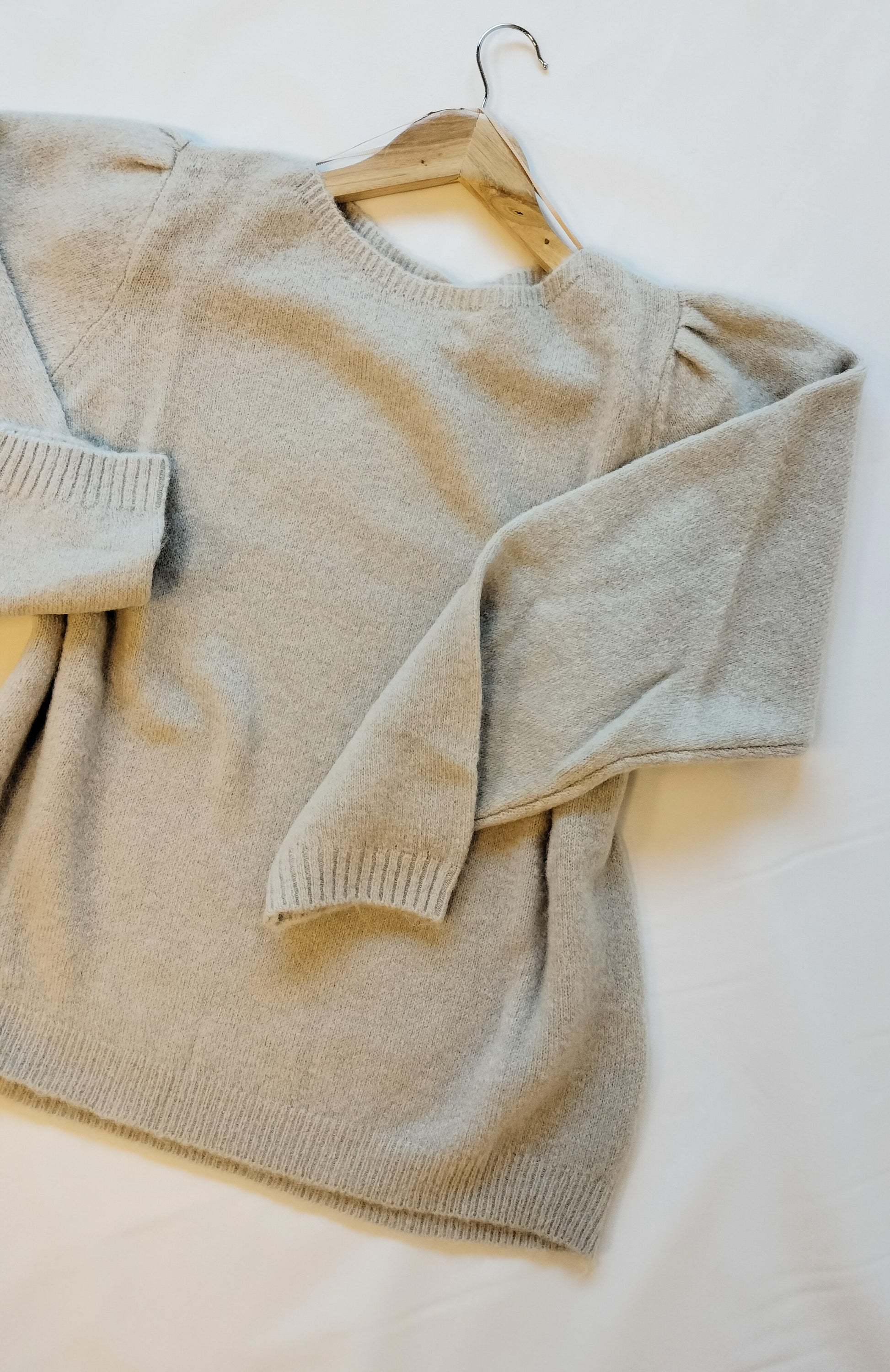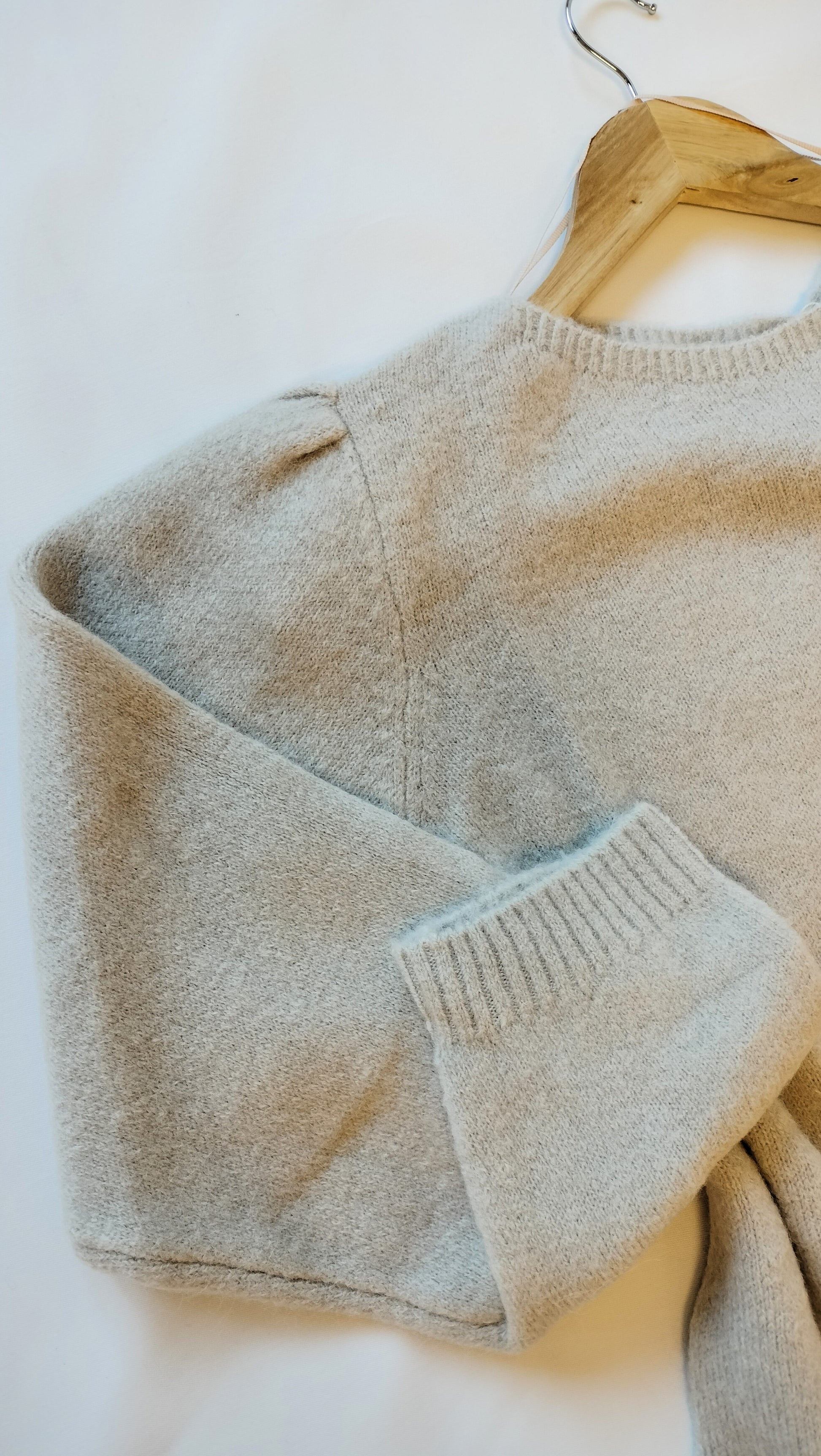 Ref. JR VI23FG480 Jersey de punto grueso tacto super suave, cuello redondo, manga abullonada, corte entallado, color beige, talla XL