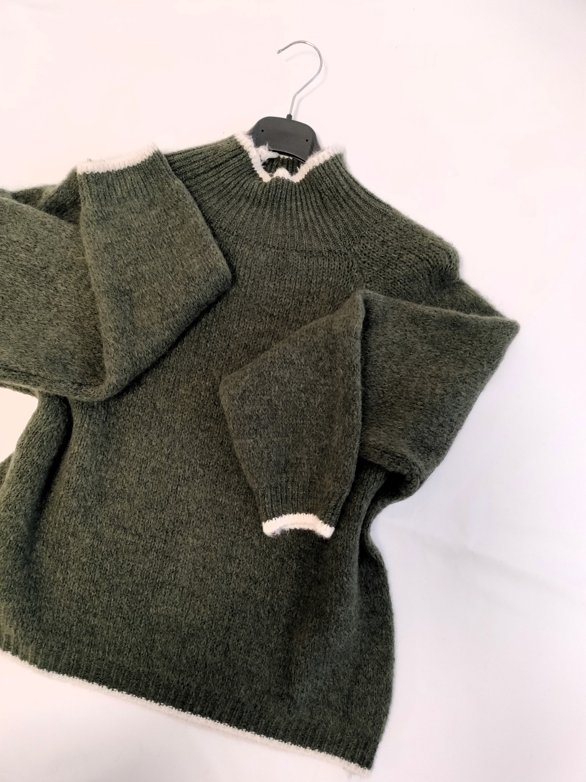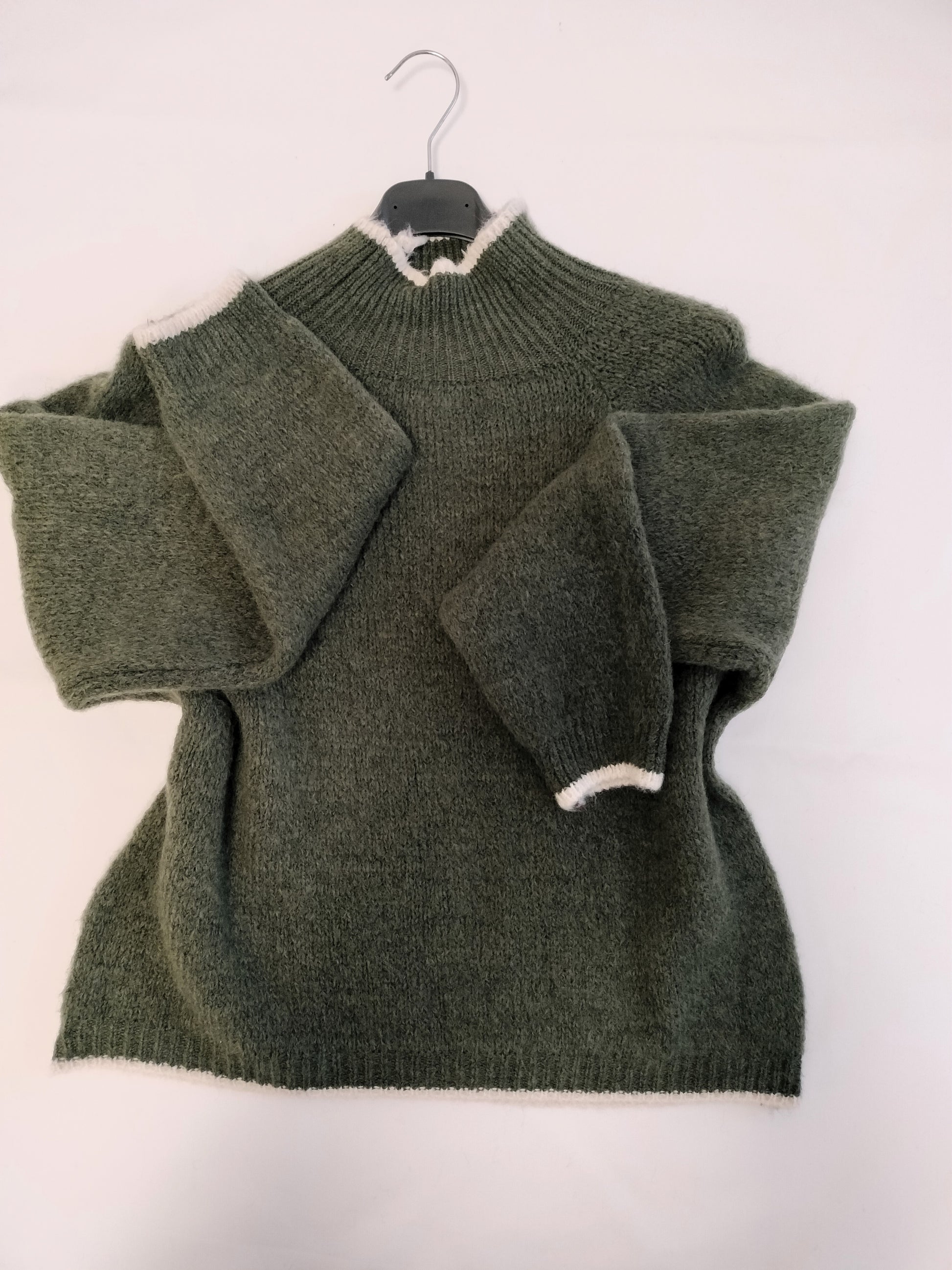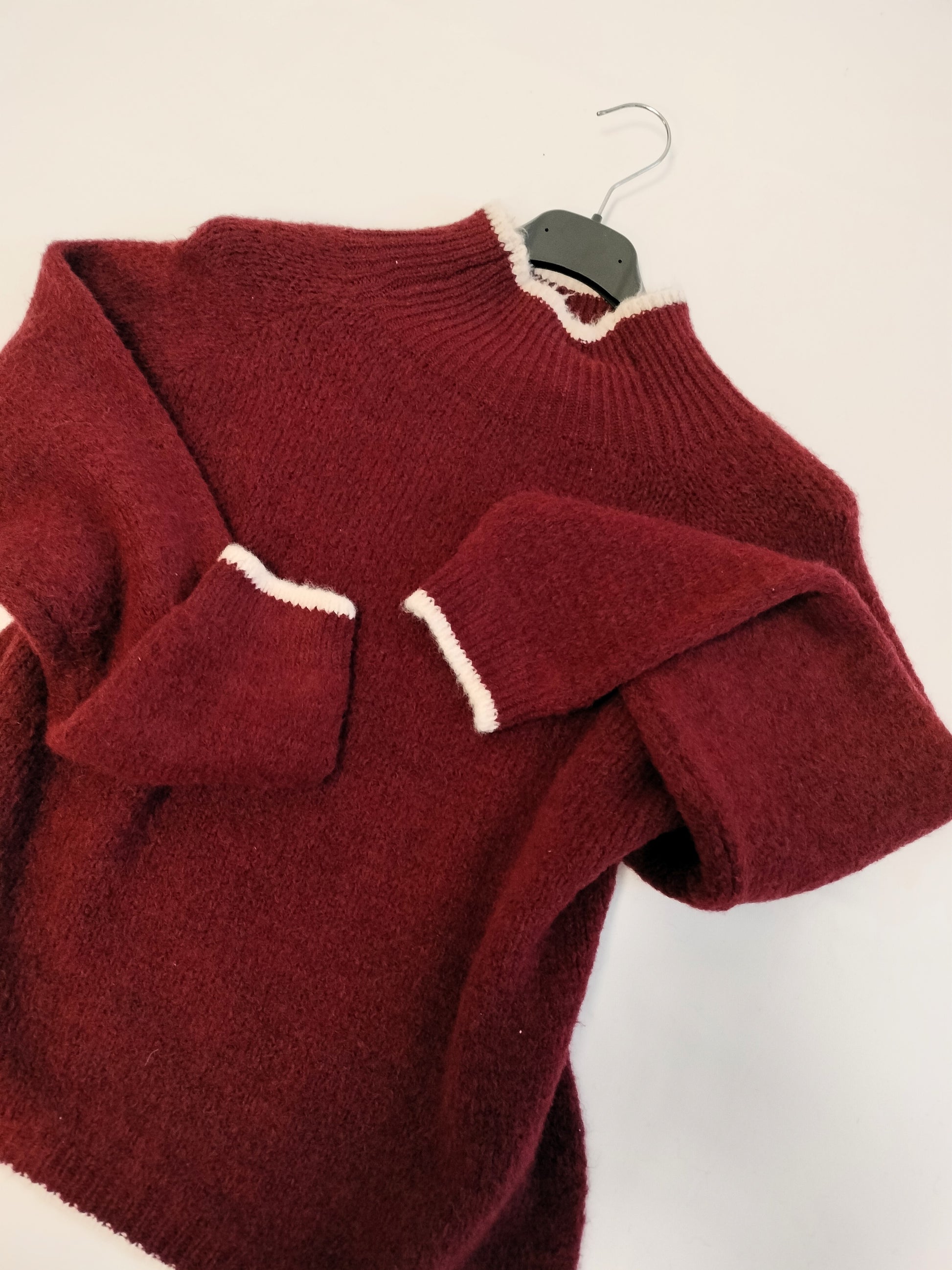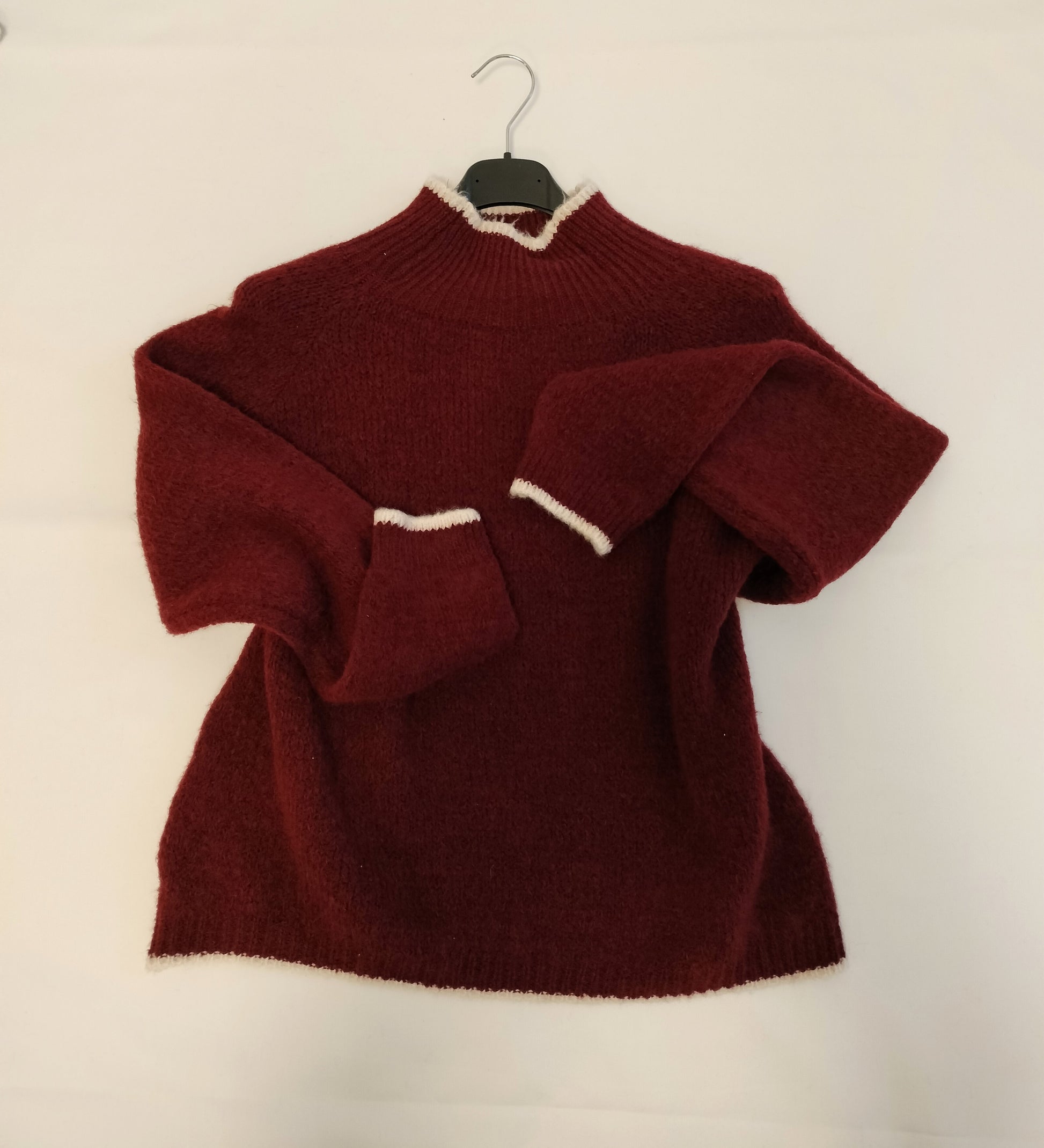 Ref. 23888 Jersey grueso, talla única M/L, manga larga, corte recto, corto, cuello perkins. Color granate y kaki