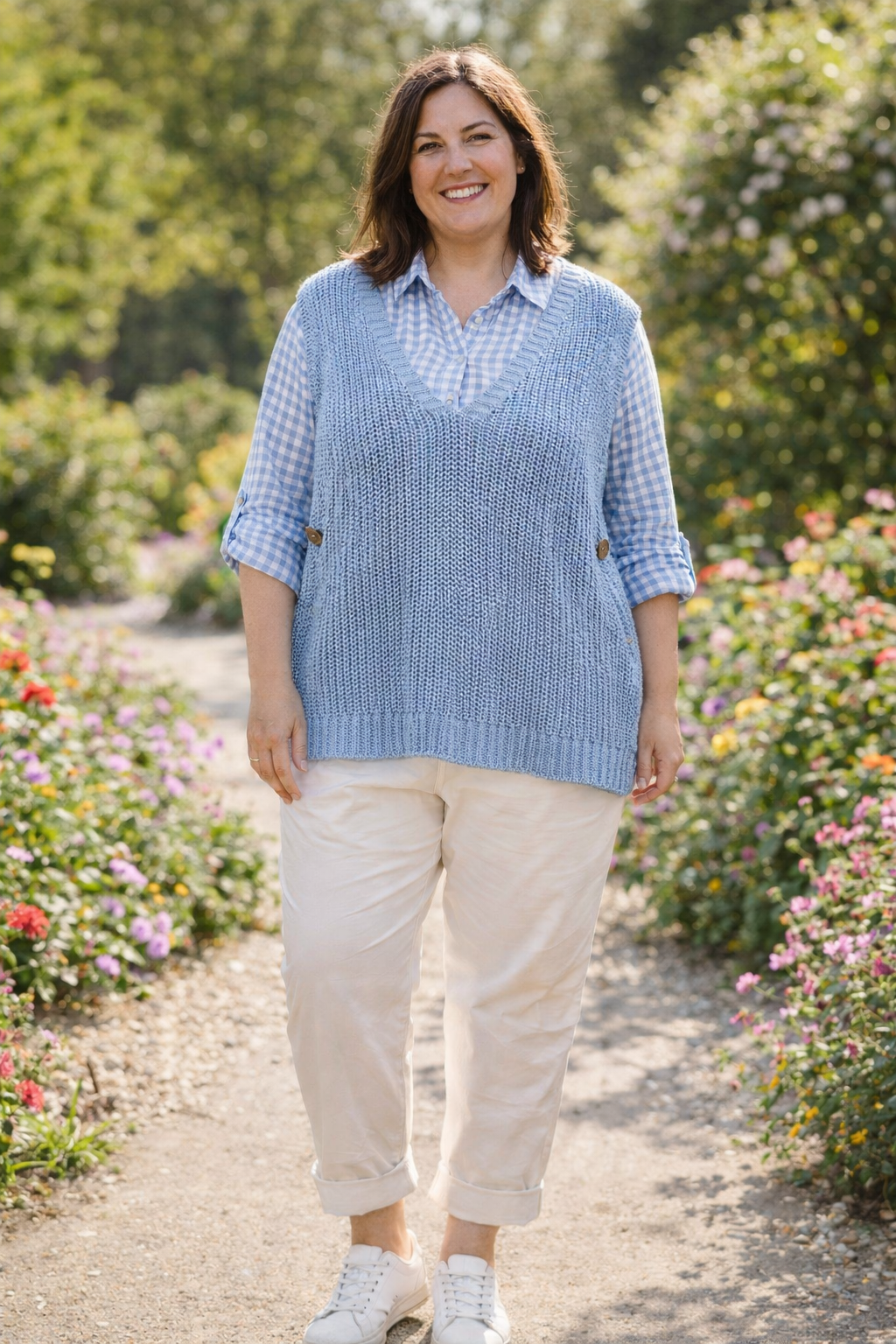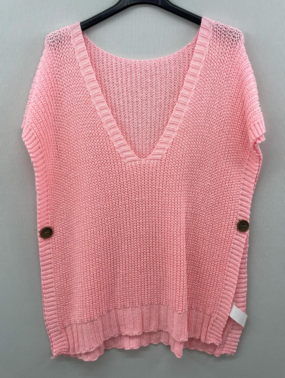 Ref. 15137 Jersey de punto sin mangas, tipo chaleco, escote tipo V amplio, 2 botones laterales. Talla única curvy , pecho 58 cms elástico