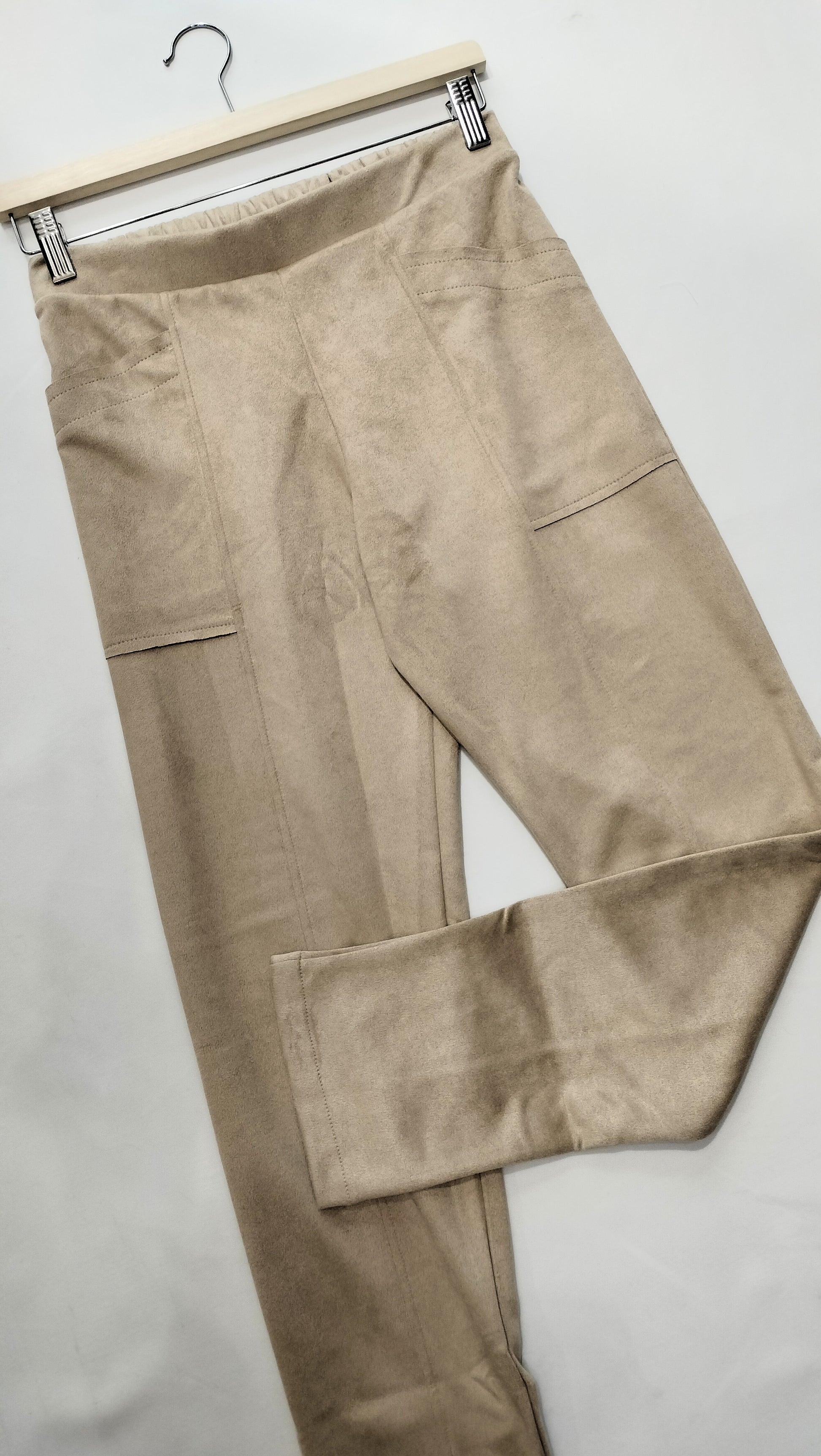 Ref. JR 6020 Pantalón piel sintética girada (tipo piel de melocotón), cintura elástica, 2 bolsillos, corte recto. Color camel
