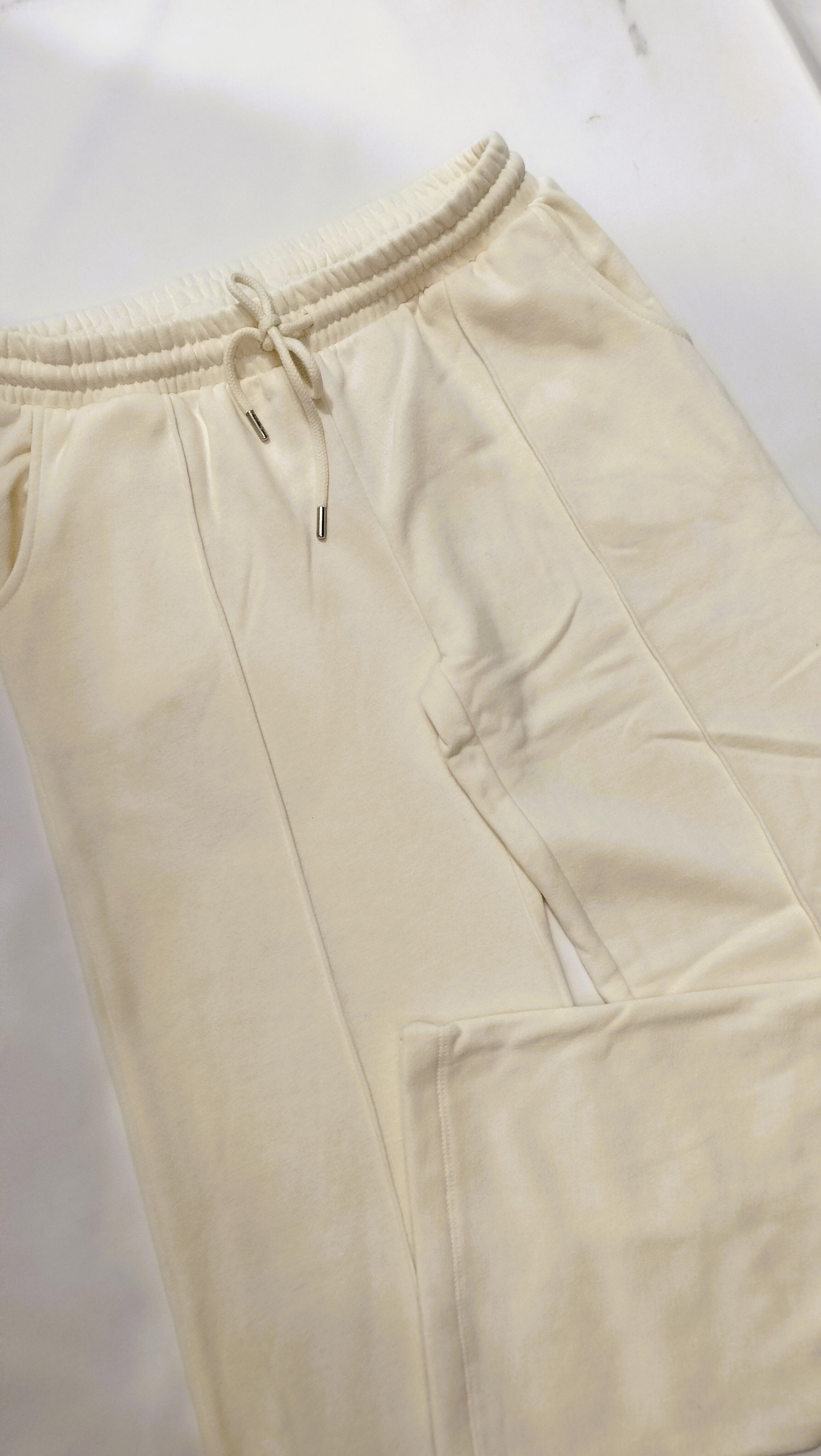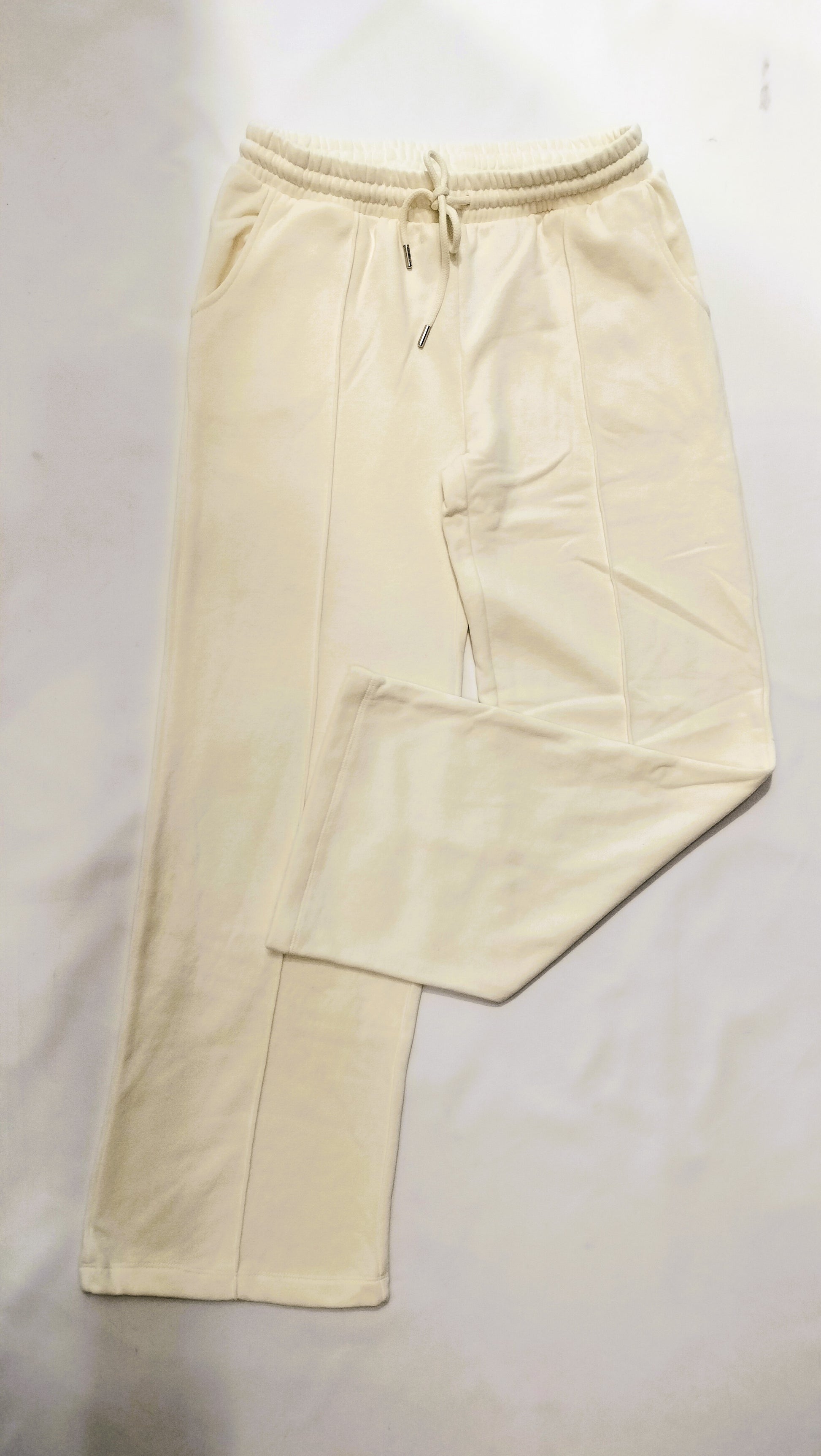 Ref. JR YU-2111003 Pantalón largo tipo chándal, corte recto, goma en la cintura, 2 bolsillos, afelpado, color blanco roto