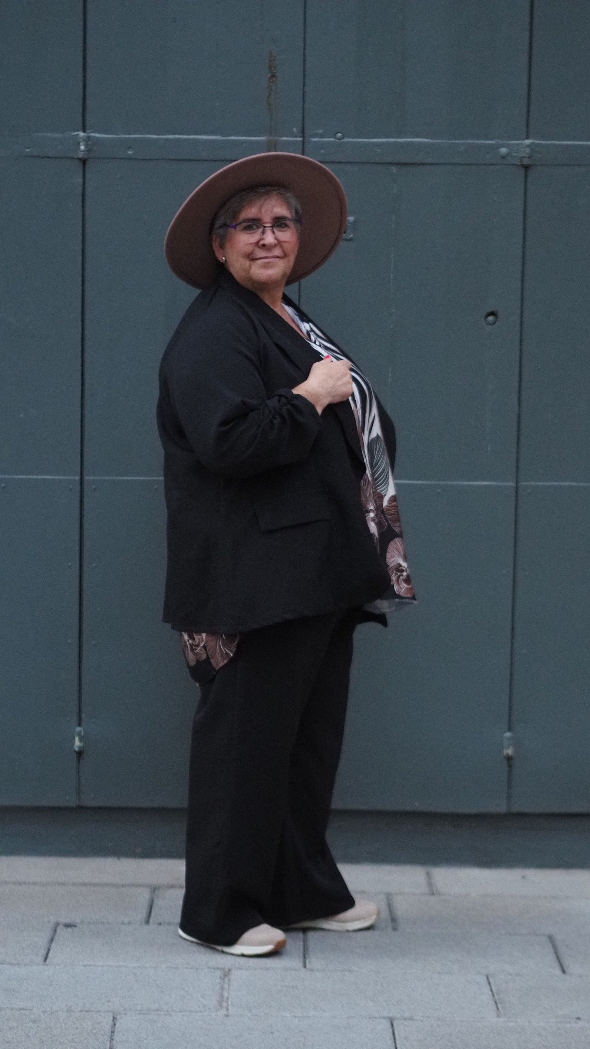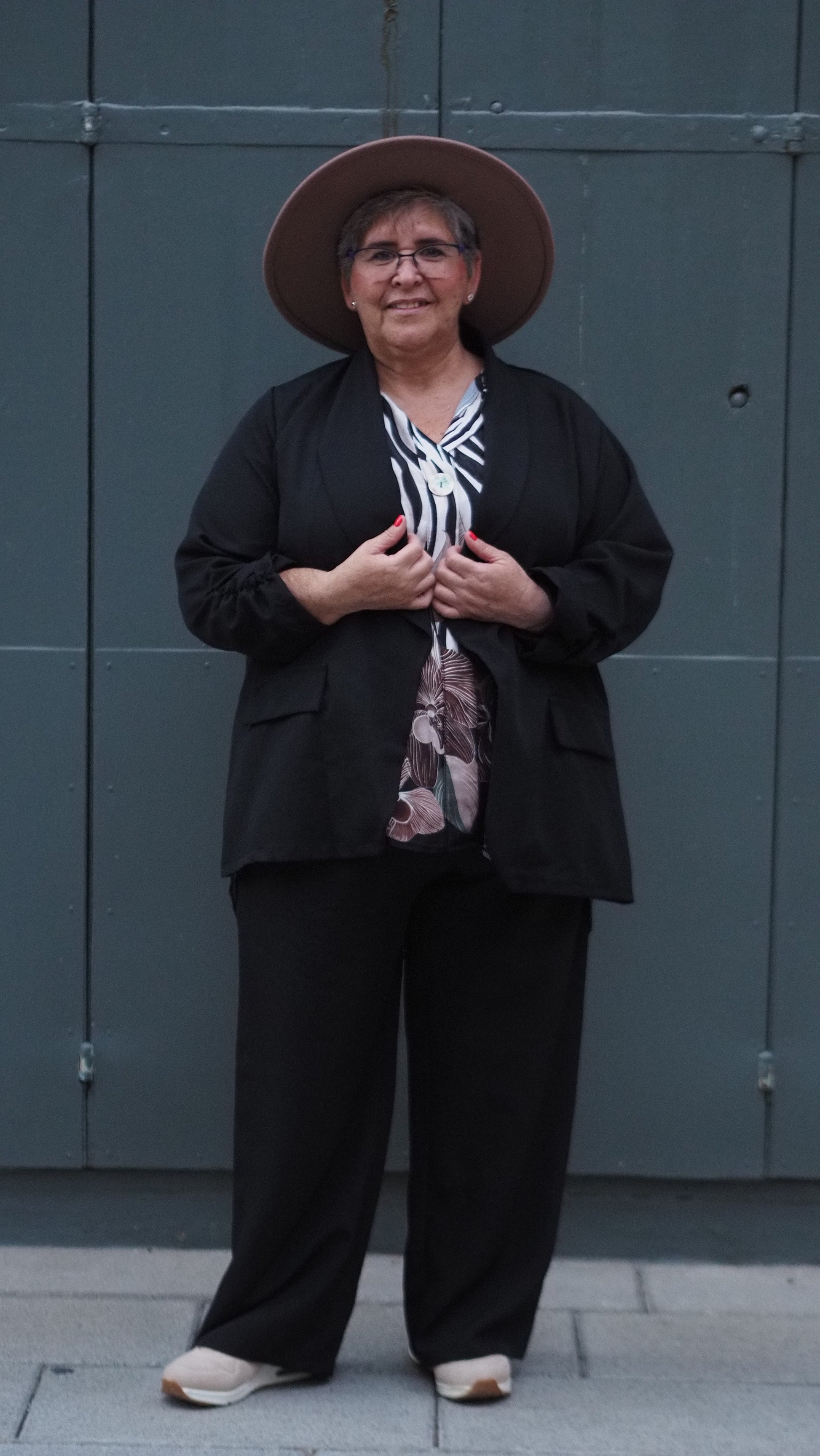 Ref. 23252 Pantalón de vestir talla única curvy, cadera 65 cms (talla 52/54). Corte recto, goma en la cintura por la parte trasera, cierre con botón y cremallera, 2 bolsillos, cinturón de regalo