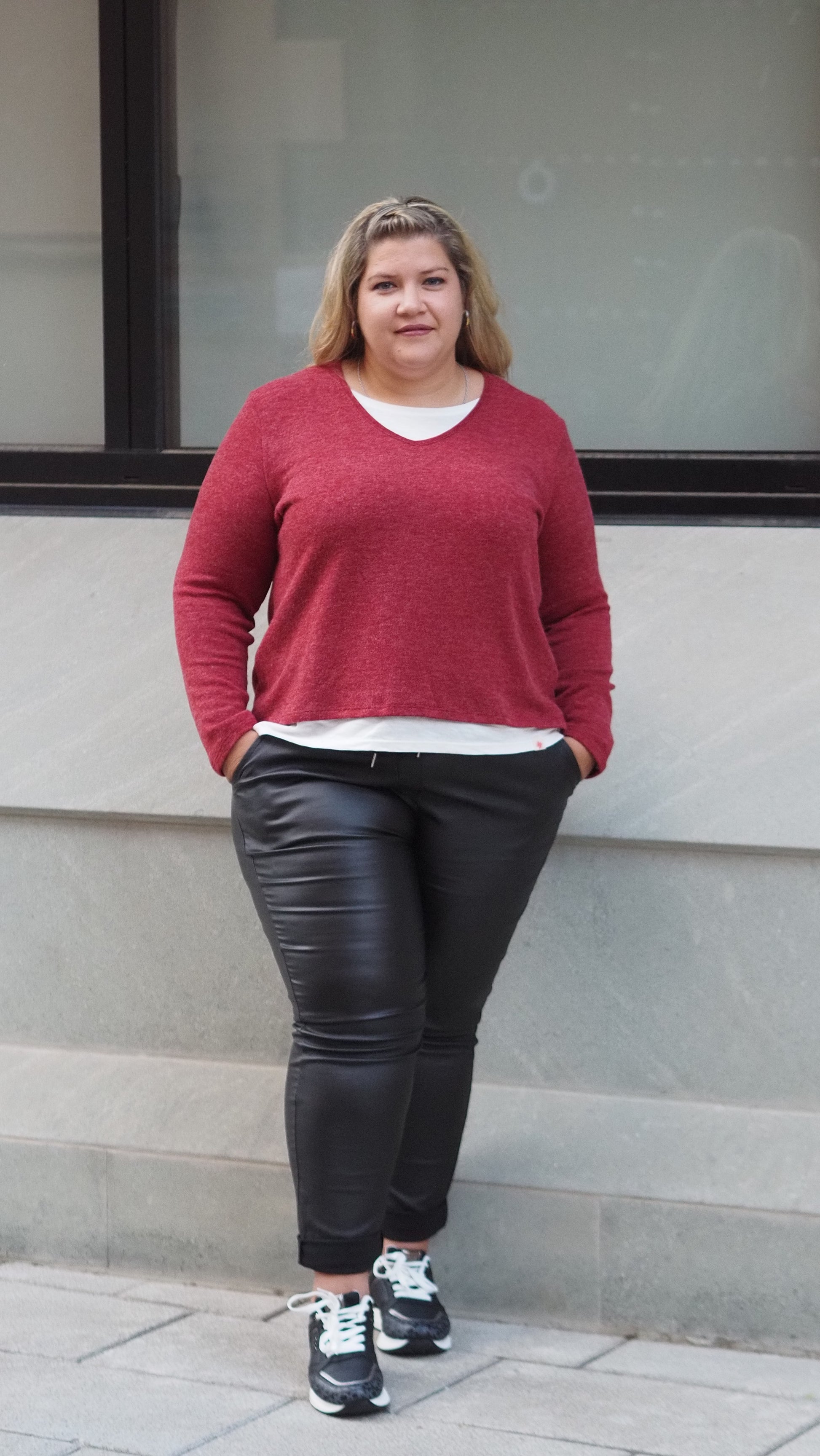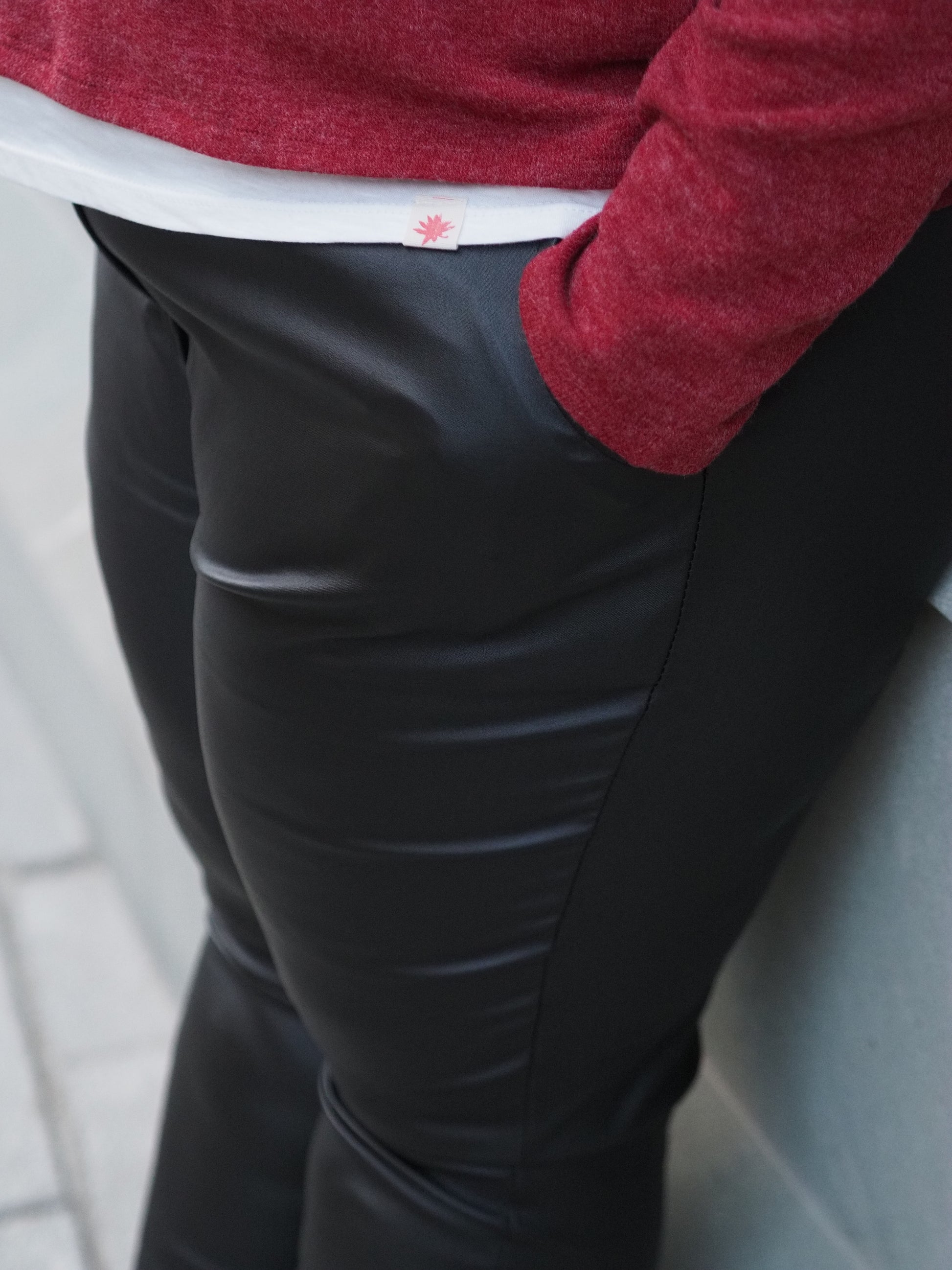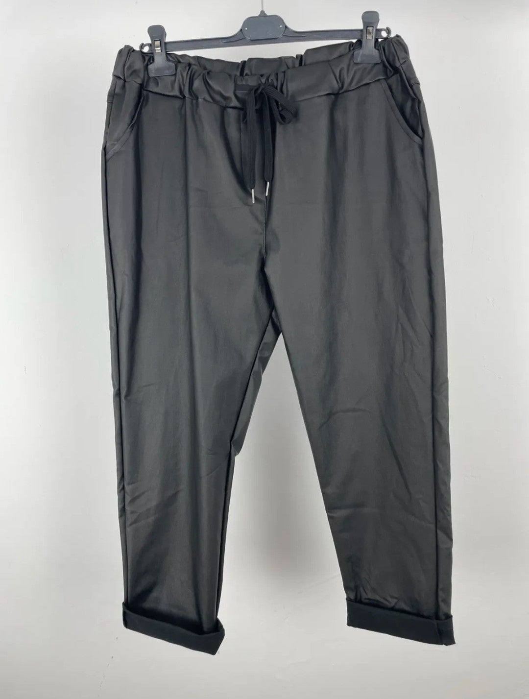Ref. 32151 Pantalón estilo jogger de polipiel, talla única curvy, cadera 56 cms, color negro, 2 bolsillos laterales, cierre con cordón