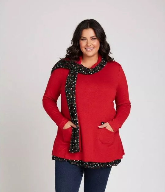 Ref. 628 Túnica - Suéter con bufanda a juego rojo talla L (42/44)