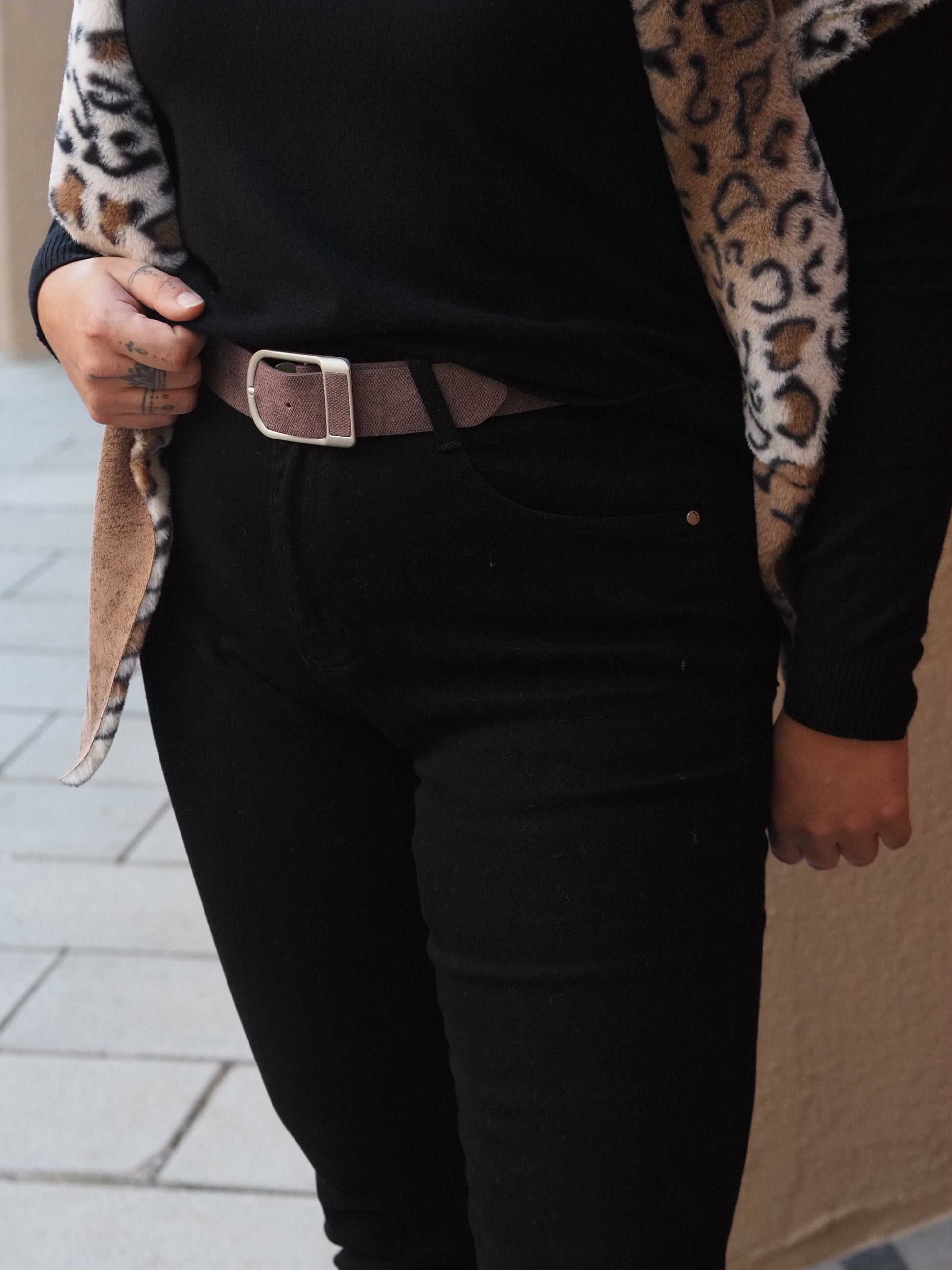 Ref. 2181 Pantalón vaquero elástico, corte ligeramente skinny, cinturón de regalo. Cierre con bótón y cremallera, 2 bolsillos delanteros y dos traseros.