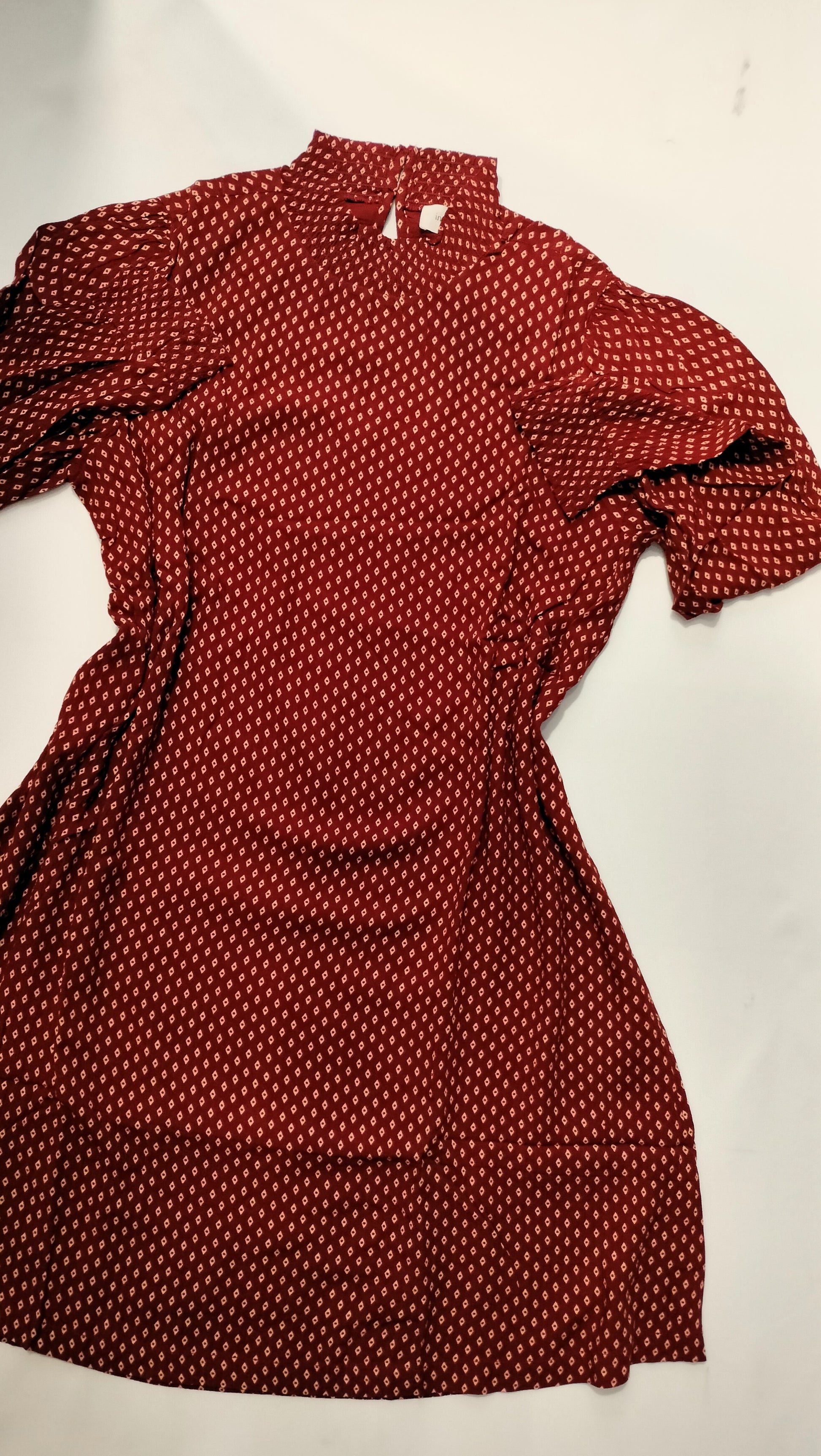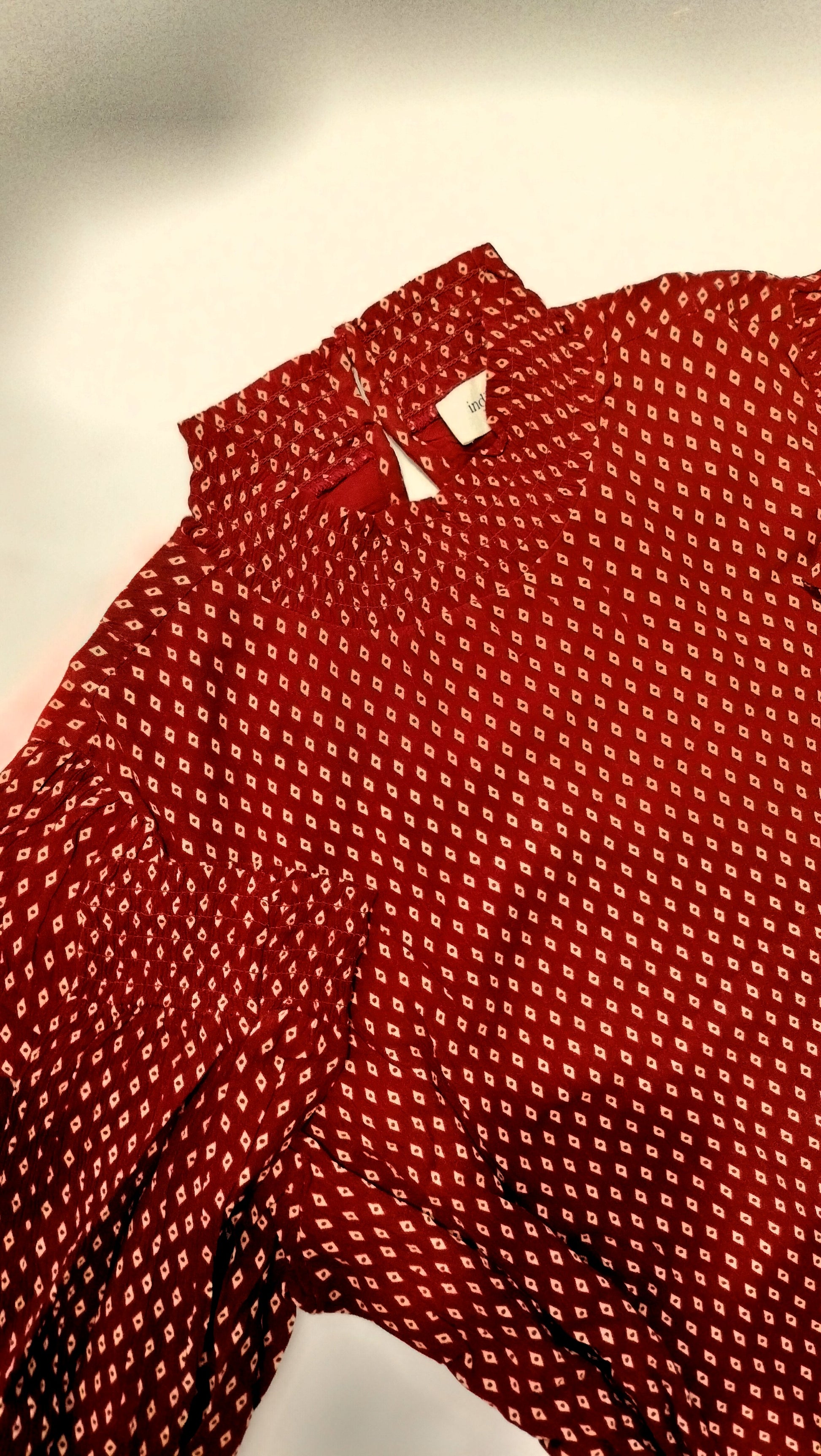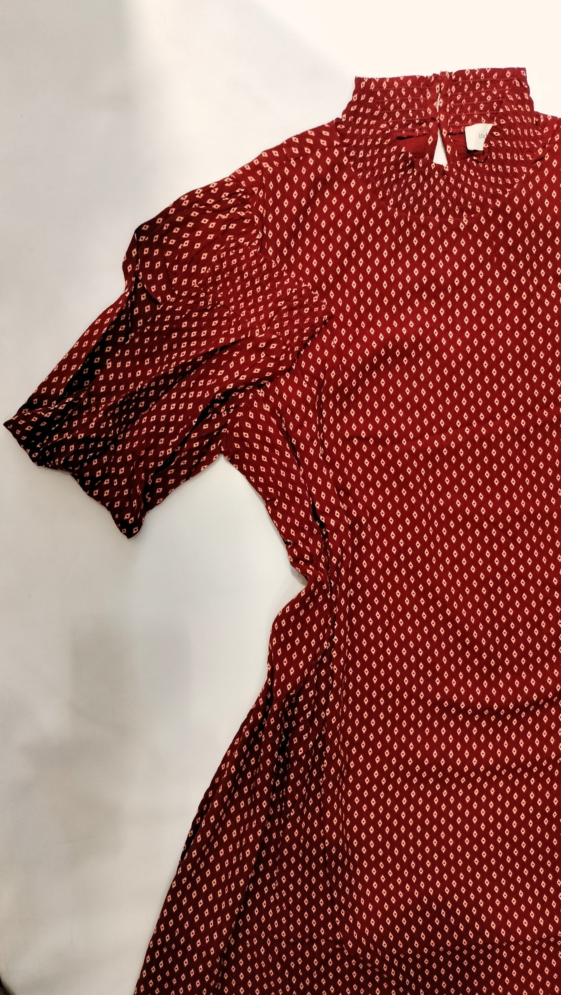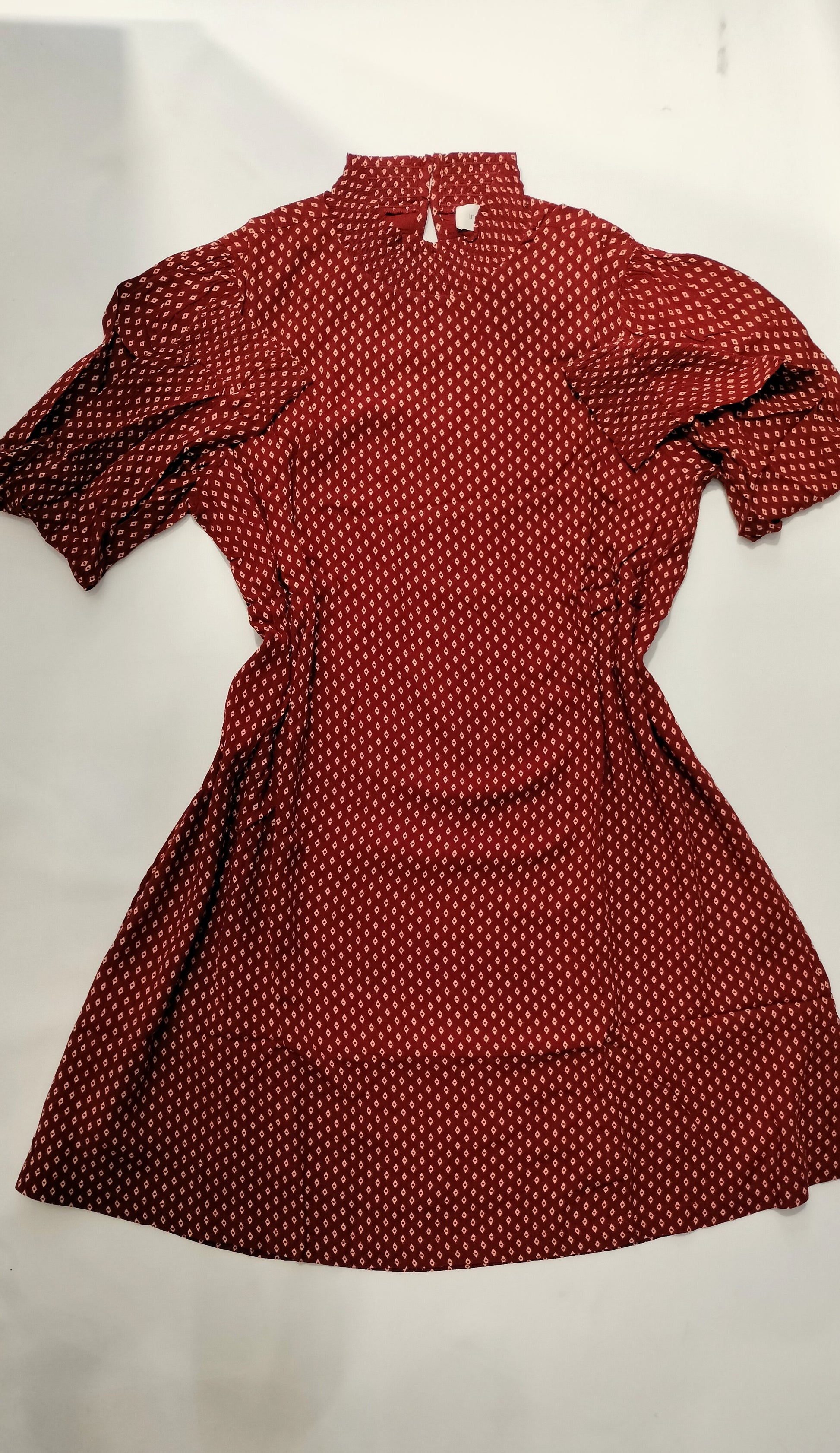 Ref. JR VI23MI441.ANA Vestido largo por la rodilla, manga larga, puño elástico, corte recto, con forro, cuello tipo perkins elástico, cierre con doble botonadura en la parte posterior del cuello. Color burdeos
